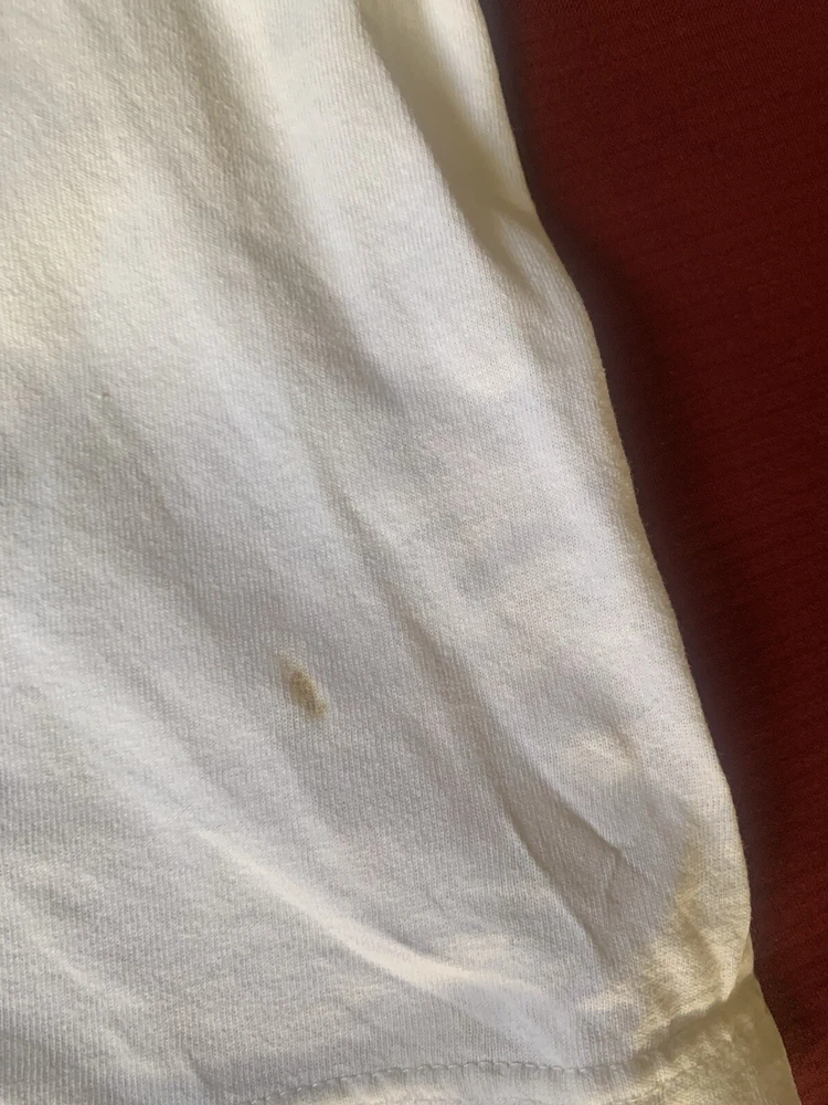 The tee shirt has a hole and stains look at the picture but if you have any questions let me know