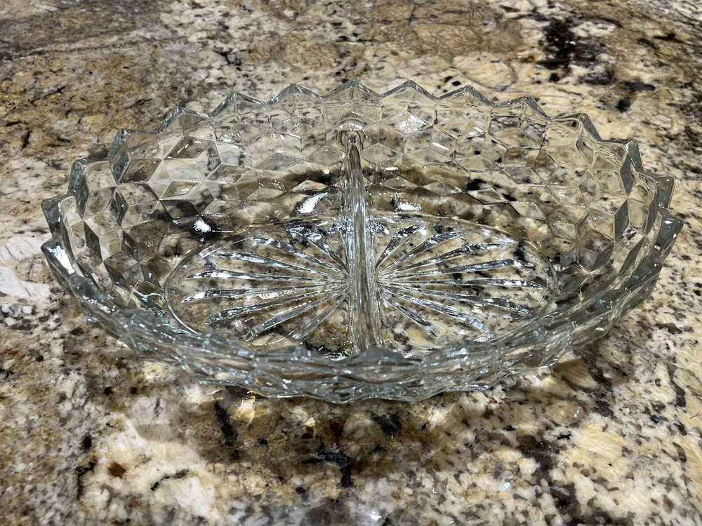 Beautiful vintage divided serving dish from Fostoria American in excellent condition β¨π€π₯° 2.25β tall 10β long 7β wide