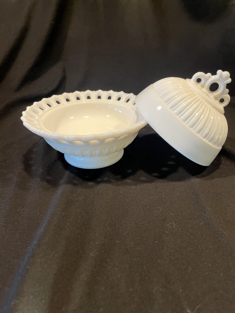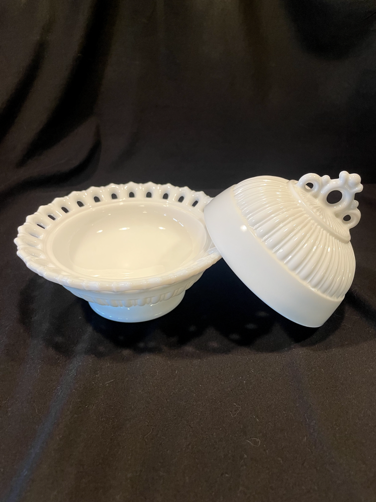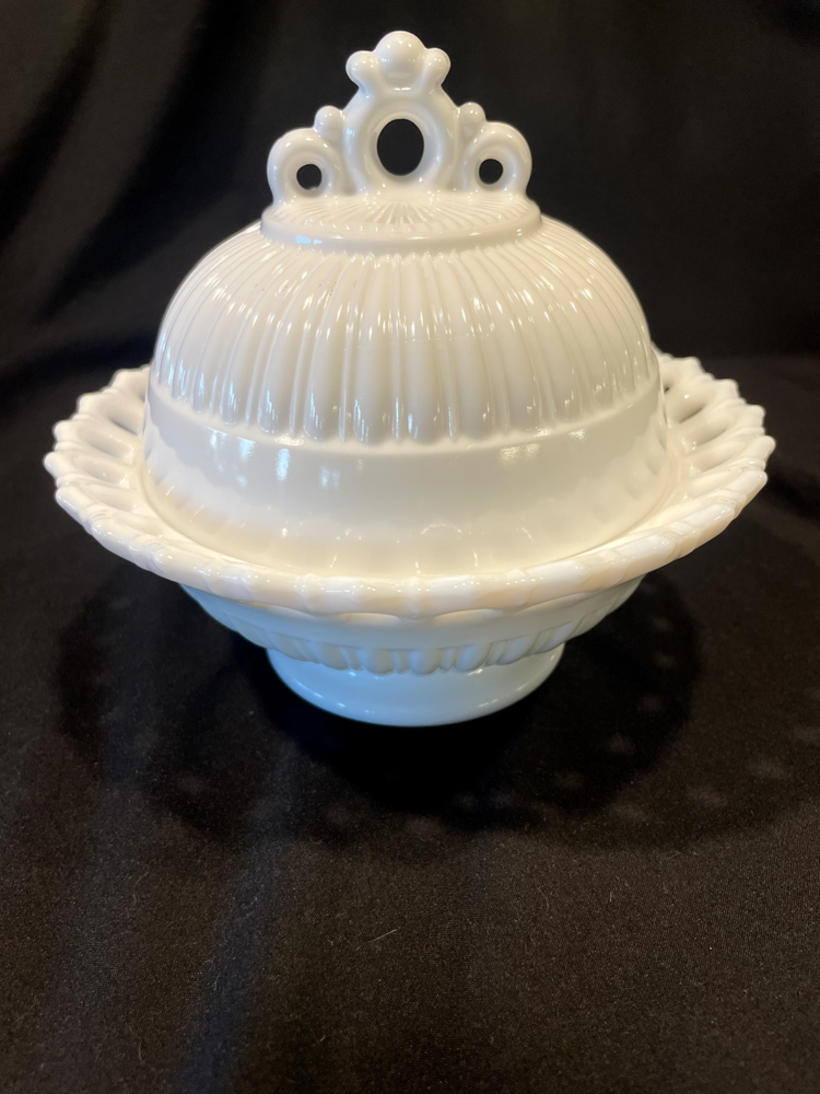 đ§ Vintage Milk Glass Butter Dish with Lid â Fostoria Glass âRandolphâ Pattern | From Carole Ann & Co. â¨Because butter deserves a throneâand every dish deserves a story.⨠This charming butter dish from Fostoria Glass is made of radiant white milk glass and features the beautifully classic Randolph pattern. With its graceful ridges, domed lid, and timeless silhouette, this piece turns an everyday staple into something special. Perfect for your breakfast table, holiday spread, or vintage kitchen display, itâs equal parts elegance and nostalgiaâa lovely little reminder that even the humble butter pat deserves a touch of beauty. đĽ Details: Vintage Fostoria Glass Co. âRandolphâ pattern in milk glass Includes dish and matching domed lid Excellent vintage condition â no chips or cracks, just a smooth patina of mid-century charm đ A Carole Ann Original Tale: This lovely butter dish once sat in the kitchen of Mrs. Florence Adeline Tucker , a woman who believed that everything tasted better with butterâand she wasnât wrong. Every morning, sheâd warm a biscuit on the stovetop, slice a pat of butter with precision, and whisper, âYou deserve softness today.â Florence didnât believe in margarine. She thought store-brand butter âlacked character.â And this dish? It was her daily companionâwiped clean with care, stored in the icebox overnight, and always placed on the table beside the jam jar and the salt cellar. It made appearances at church brunches, garden teas, and one memorable pie contest (her crusts won, of course). She once told her niece, âThis butter dish has more manners than half the PTA,â and honestly, she wasnât wrong there either. After Florence passed, her daughter tucked this dish away with her handwritten biscuit recipe and a linen napkin that still smelled faintly of rose water. Carole Ann found it in a box labeled âNice ThingsâKeep if Roomâ at an estate sale and couldnât resist. Now itâs ready for a new table, a new story, and many more pats of golden goodness. đ From Carole Ann & Co.âwhere butter dishes come with backstories, and every piece is polished with purpose. â¨Spread joy. Serve with heart. Butter everything.⨠Disclaimer for Carole Ann & Co. Shipping and Handling At Carole Ann & Co., we take great care in packing your items securely and shipping them out promptly. However, once an order has been shipped, we are not responsible for any errors or damages that occur during transit. If your item arrives damaged, we kindly ask that you file a claim directly with USPS by visiting USPS.com . Important: Please do not discard any broken items or packaging. In the event of damage, USPS may require you to take the damaged item and packaging to your local post office for inspection as part of the claims process. Thank you for your understanding and support!