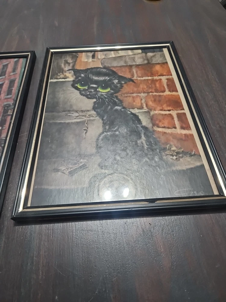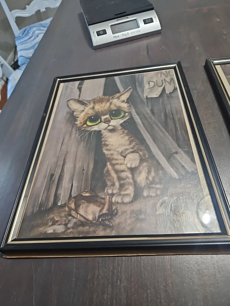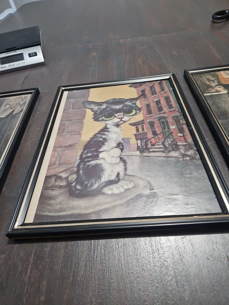 HomeVintage Framed Pity Cat by Artist Gig Big Eyes Print Sheet 12"×9" Lot Of 3