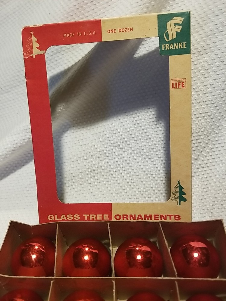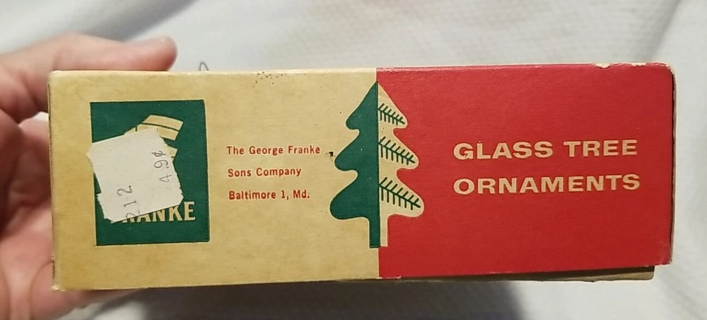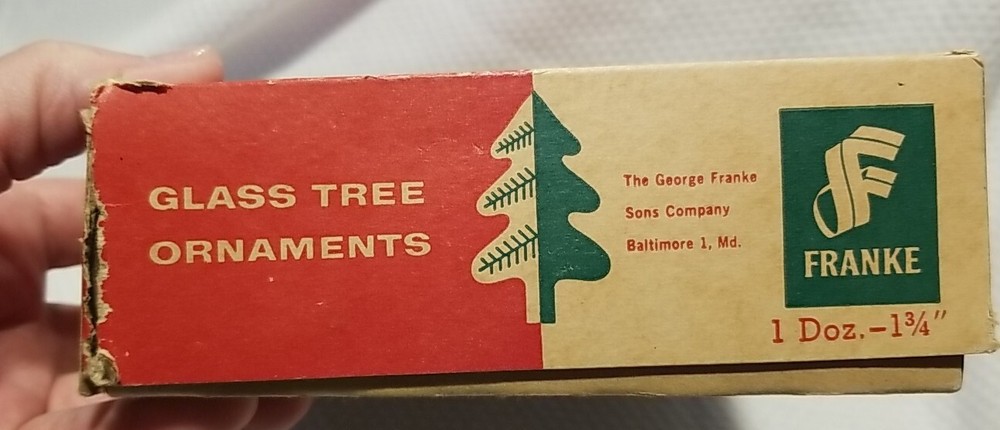 Add a vintage touch to your Christmas decor with this beautiful set of ornament hooks from Franke & Sons Baltimore U.S.A. The red cardboard box contains 12 medium-sized hooks, perfect for hanging your favorite Christmas ornaments. The box is labeled with the word "Ornaments" and features a beautiful Frank character design. These hooks are perfect for collectors and are sure to add a festive touch to your holiday decor. The set includes everything you need to hang your ornaments and is a great addition to any Christmas decor collection. Get your hands on this vintage set today and add a touch of nostalgia to your holiday season. Great vintage condition. No chips or cracks