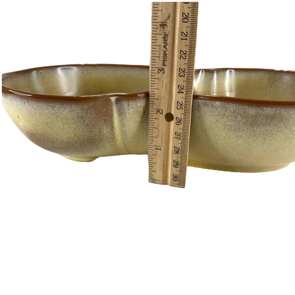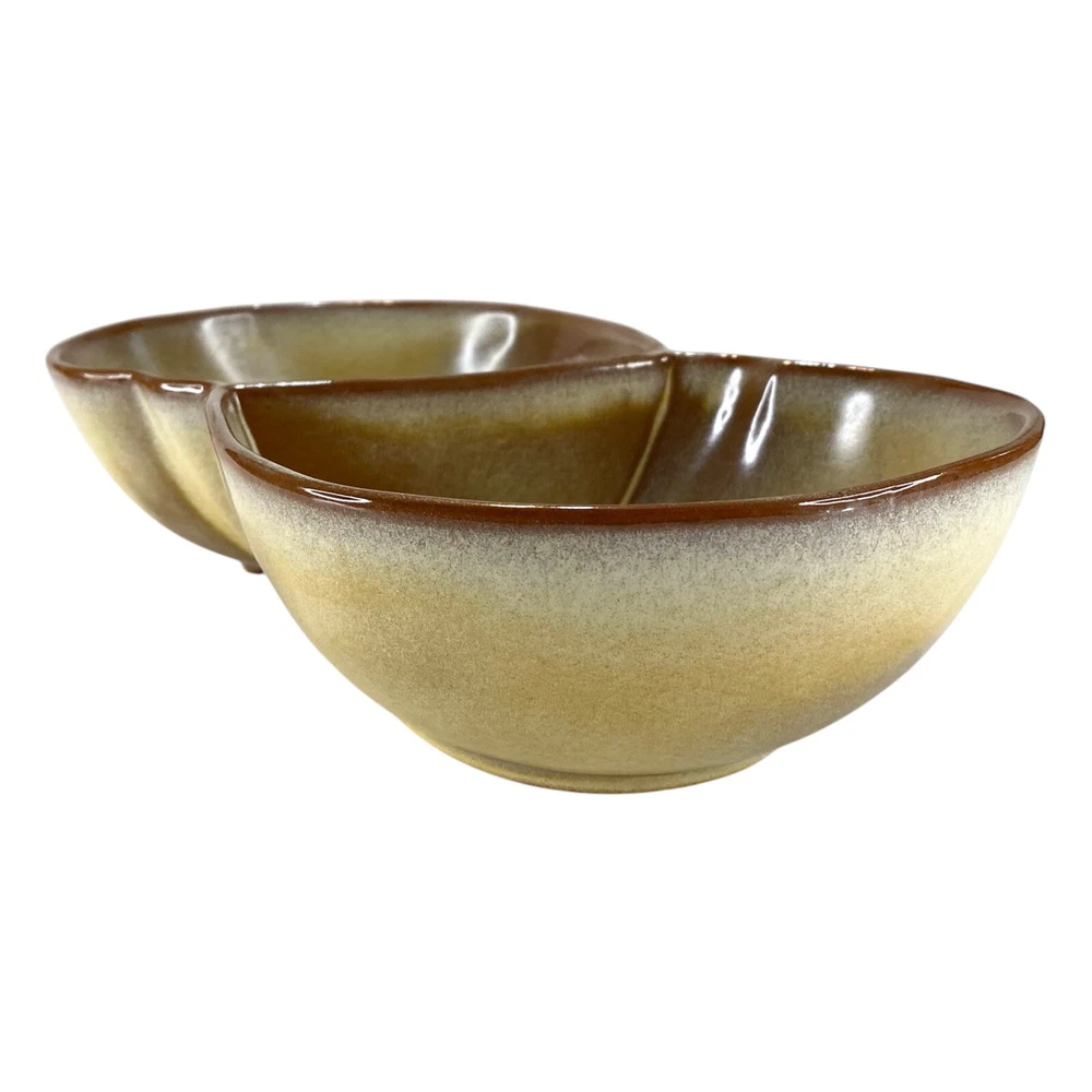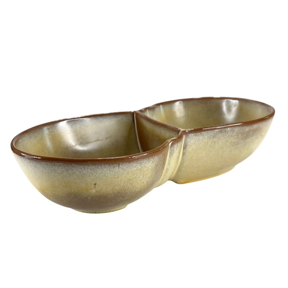 Discover the charm of classic American art pottery with this vintage Frankoma Pottery divided serving bowl. Exquisitely crafted in the United States, the bowl showcases the timeless appeal of Gold Desert, an enchanting hue that adds a touch of elegance to any table setting. The oval shape and unique divided design make it an ideal piece for serving relish or desserts, bringing both function and style to your culinary presentations. Adhering to traditional pottery techniques, this piece hails from the revered era of Frankoma/Gracetone, renowned for its quality and craftsmanship. Whether you're a collector of vintage pottery or seeking to infuse your home with a slice of history, this clay bowl is a testament to the enduring beauty of artisanal goods.