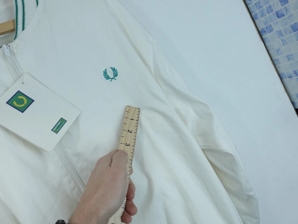Genuine Vintage Fred Perry Bomber Jacket Measurements shown in the photos With tags but please note a nick on the sleeve and a couple of small marks as shown in the photos I will ship this item out via 2-3 Day Mail with a tracking number for confirmation I ship items out EVERY DAY so EXPECT a QUICK delivery! Please feel free to ask any questions you may have I answer most questions instantly! Please note that used items may have some pilling, wear and fading (especially around the collar and other seams). Any notable damage or excessive pilling/wear/fading will be noted.