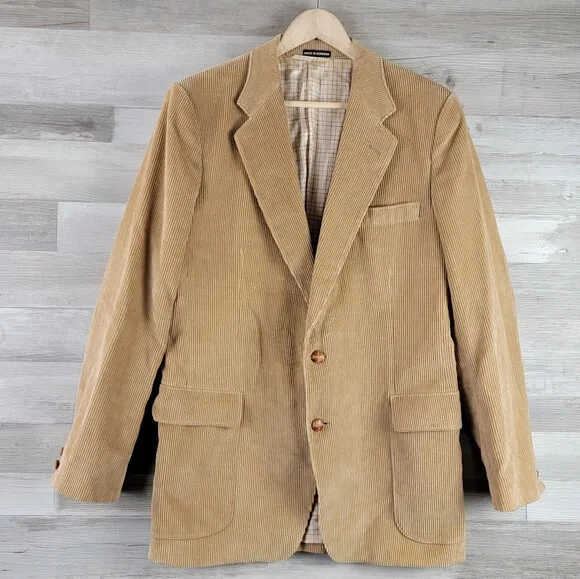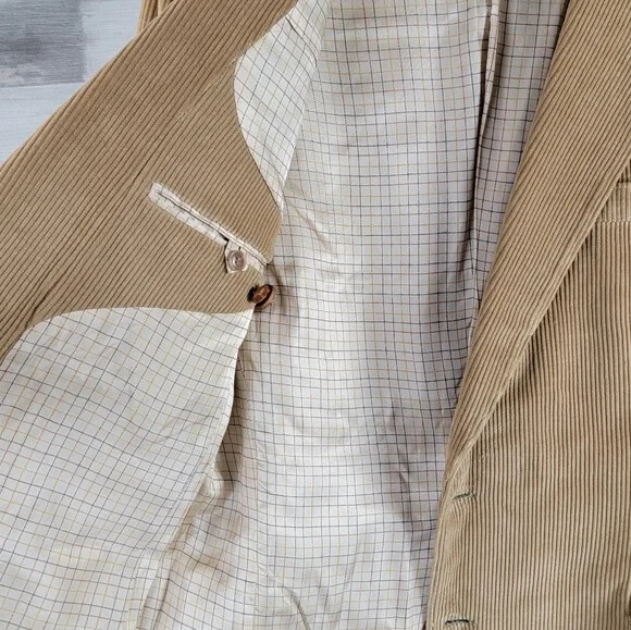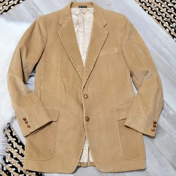 Vintage Frenchman Tan Whale Corduroy Blazer Mens Size 42R No Major Flaws In Great Overall Condition Cotton Corduroy Material Button Closure All measurements laying flat and in inches: Shoulder to hem: 31" Pit to pit: 21" Sleeves: 19" Cuff to Pit k5_121524 Vintage, Corduroy, Fall, Winter