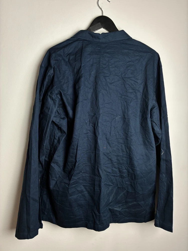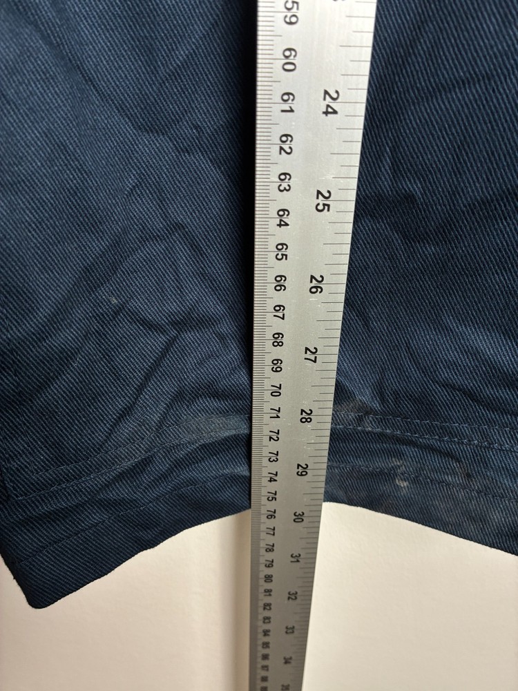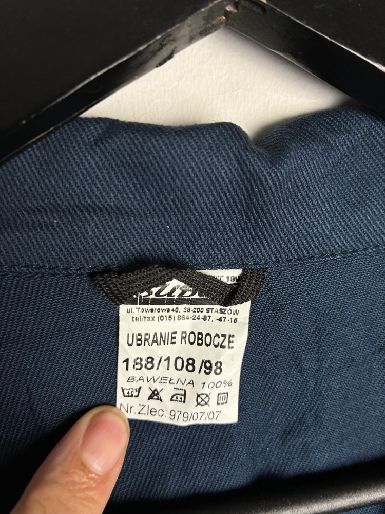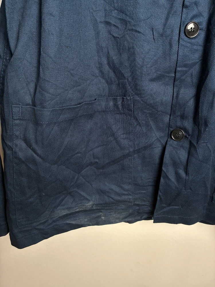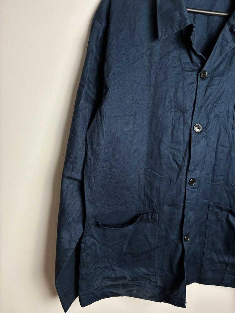 Vintage Workwear Chore Jacket Navy 100% Cotton Twill Button Up Utility “Very good condition overall with light cosmetic marks consistent with normal use, no rips or tears.” 100% cotton twill fabric (labelled BAWELNA 100% ) Classic workwear / chore jacket style with a worn, washed finish Plain design with no visible branding or graphics Button-up front with three practical patch pockets Light marks and signs of wear to lower hem and pocket areas as shown Approx measurements: Pit to pit 52–53cm, Length 70cm Please see photo's for best description and measurements Any questions, please ask.
