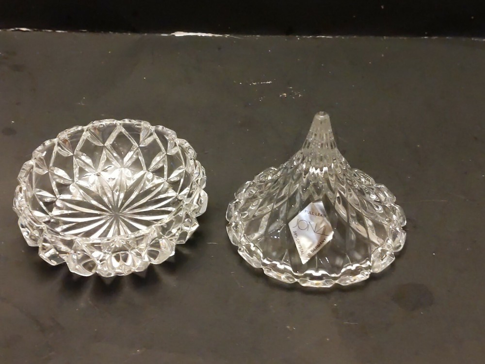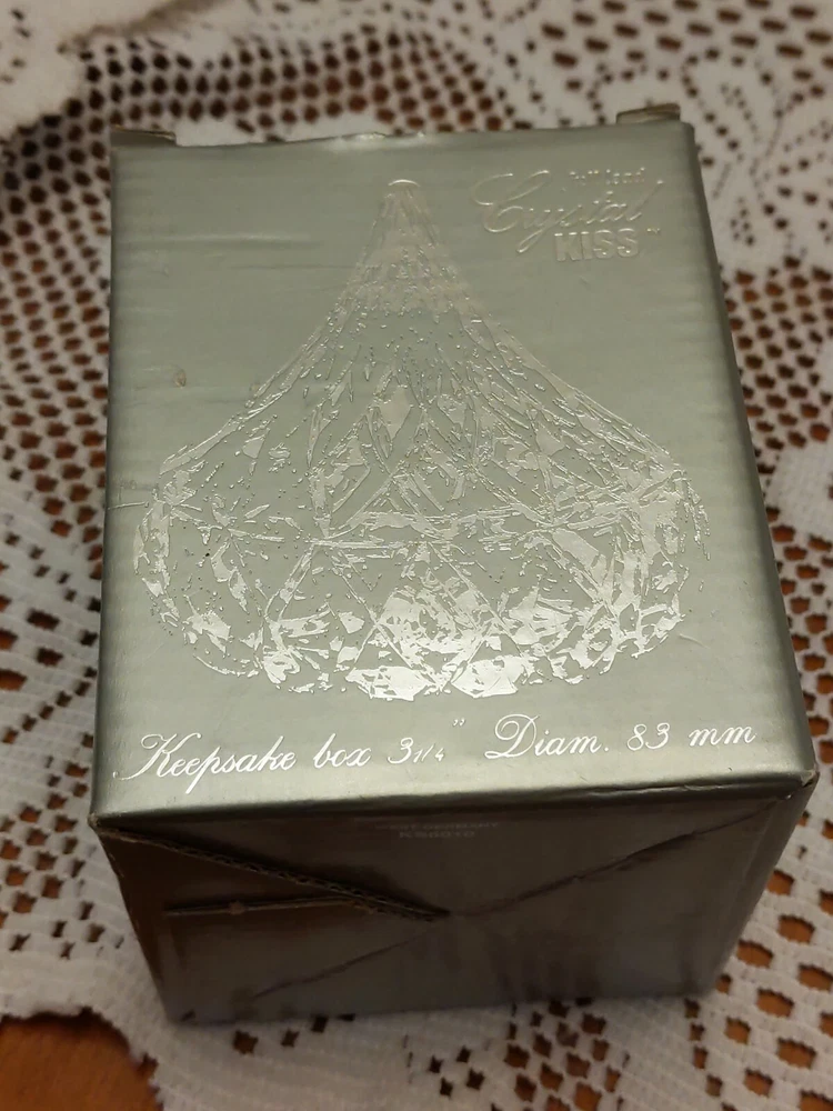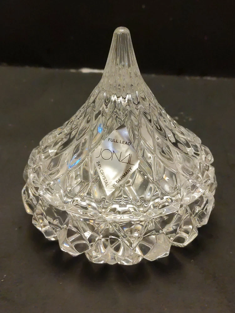 Full Lead Crystal HERSHEY'S KISS Trinket or Candy Box in Original Box with foil Label made by JONAL Crystal Ltd. West Germany. Condition is previously owned but unused condition. Box shows age and some damage, see photos. Shipped with USPS Priority Mail.