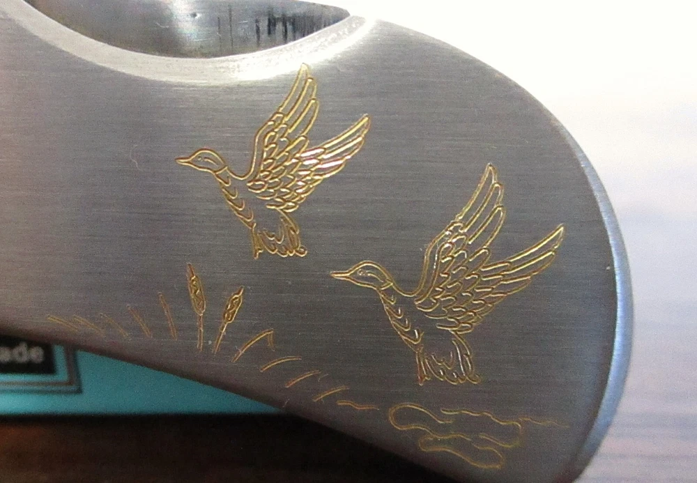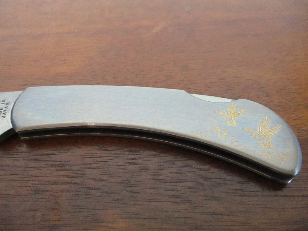 Vintage Futura 6002 G Gold Inlay Etched Ducks MCM Pocket Knife Used in good condition with box. My feedback will come after I receive feedback from you insuring, you are happy. Please view all photo and ask all questions before purchasing. I will send you a tracking number once I have shipped the item. Thank you for viewing.