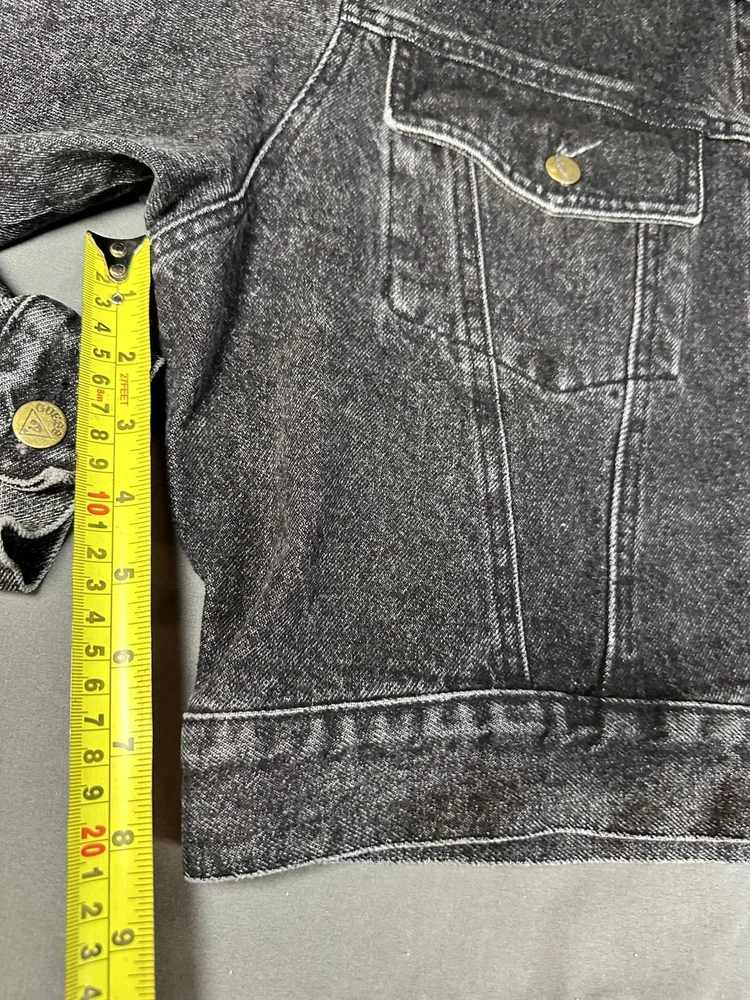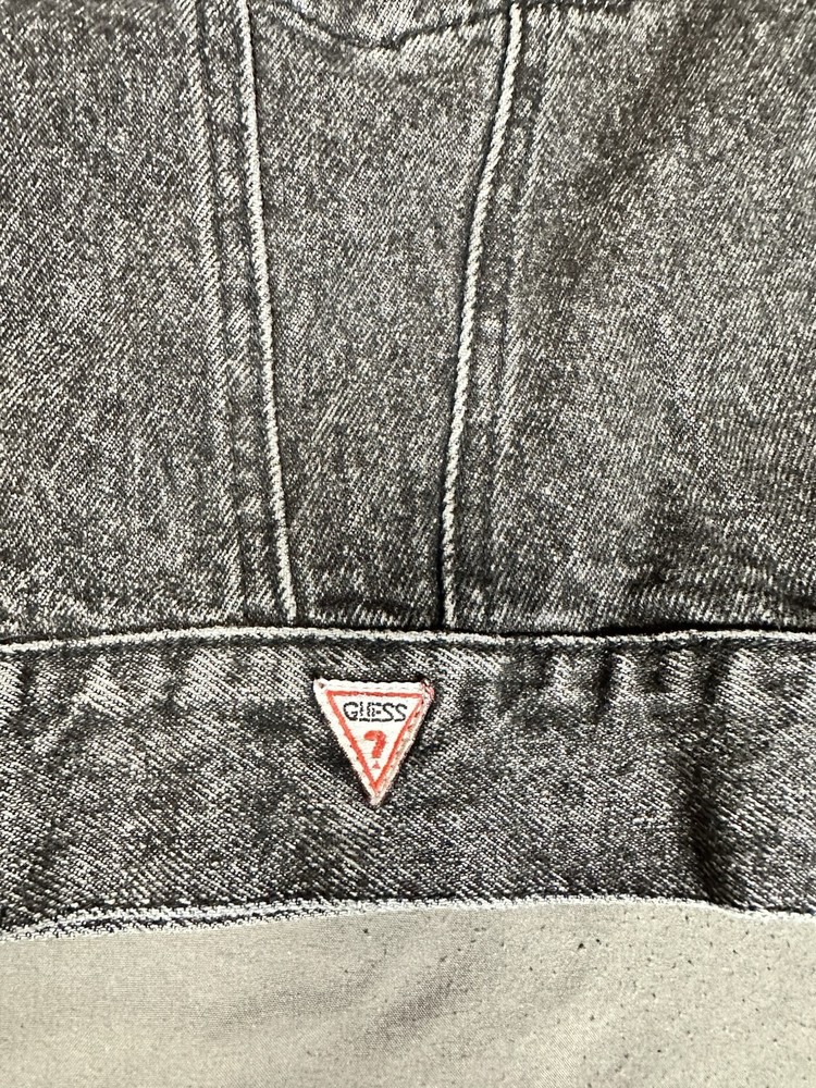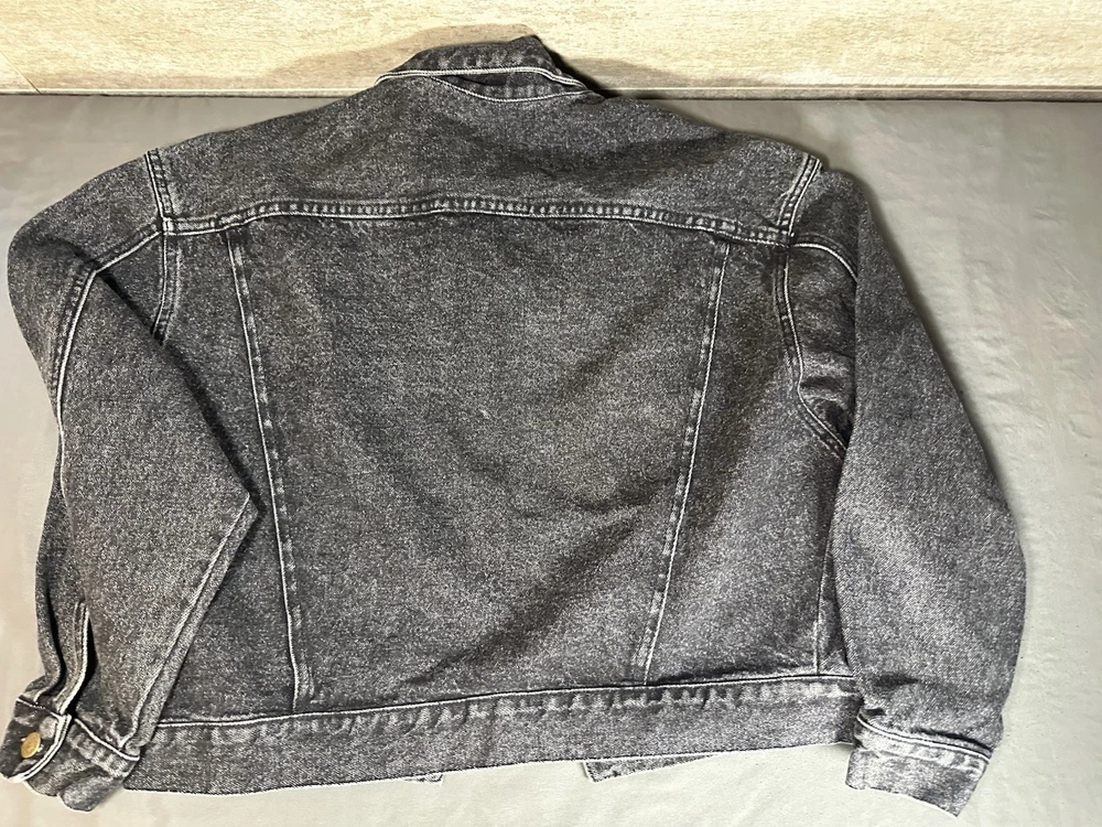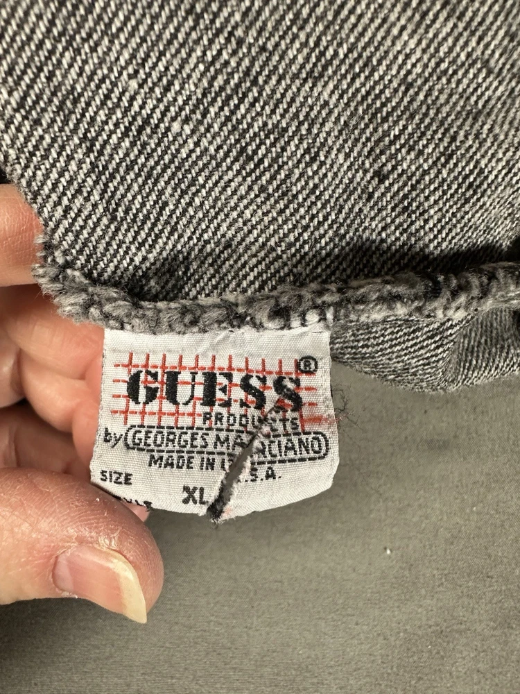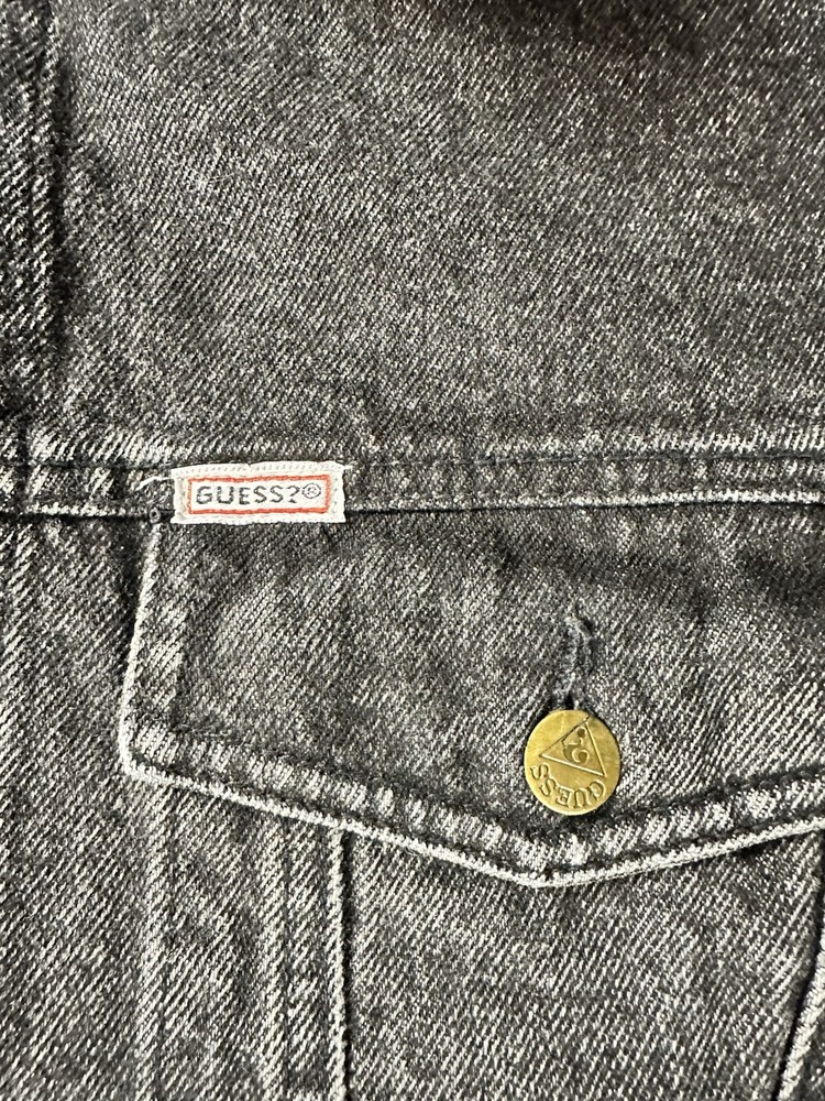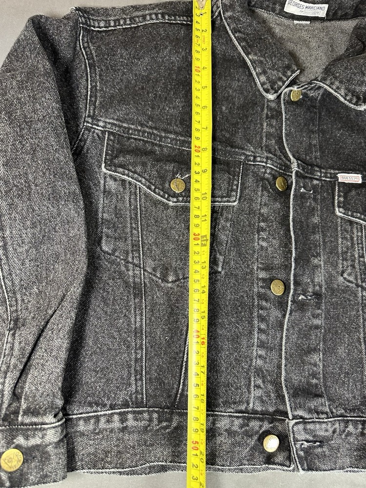The Vintage GUESS Georges Marciano XL Black Faded Denim Trucker Jean Jacket is a stylish and iconic piece perfect for any casual occasion. Made from durable cotton denim with a regular fit, this jacket features a solid black color with the signature GUESS logo accents. With a button closure and machine washable care instructions, it offers both comfort and easy maintenance. Ideal for the 80s and 90s fashion enthusiasts, this jacket is a timeless piece that can be worn in winter, fall, and spring for a classic look. It does have one tiny frayed spot on it he sleeve as shown in pics.