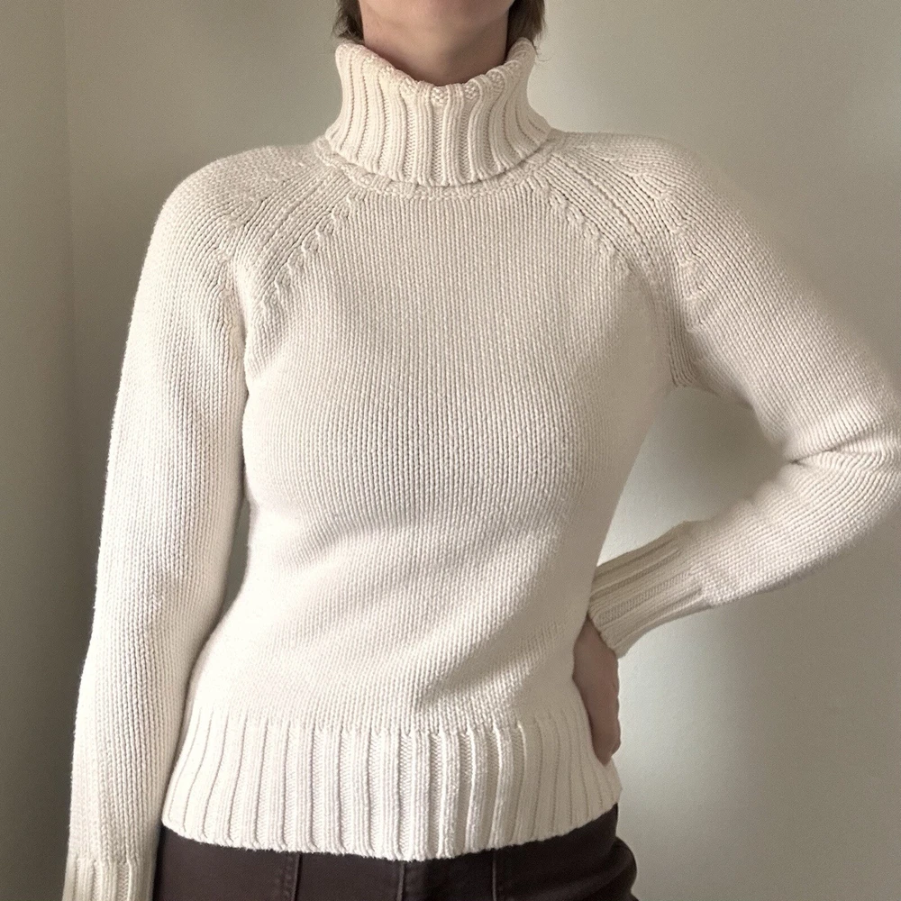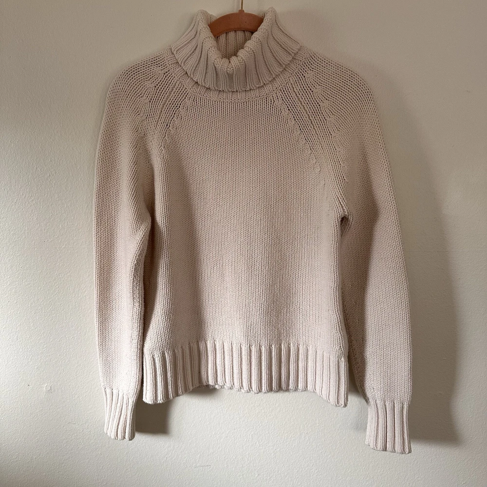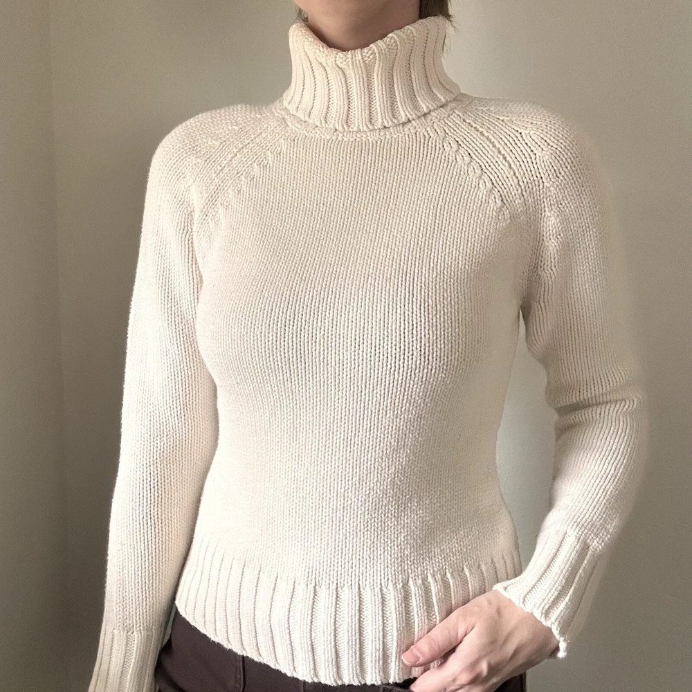 Vintage cream chunky turtleneck sweater. Very classic style, featuring raglan sleeves, chunky ribbed turtleneck, and wide ribbing on the hemline and cuffs. There are two stains on the underside of the right arm. They could probably still be treated out. I just didn’t notice them until after I washed it. Brand is Gap Tagged size S Cotton/Acrylic blend Measurements Pit to pit: 16” Length: 22.5” *model is size S/M, 29”waist, 5’8” tall #vintage #90s #y2k #rorygilmore #sweater knit chunky cozy winter fall cottage cabin prairie Gilmore girls warm basics essential minimalist versatile layers style aesthetic professional business casual