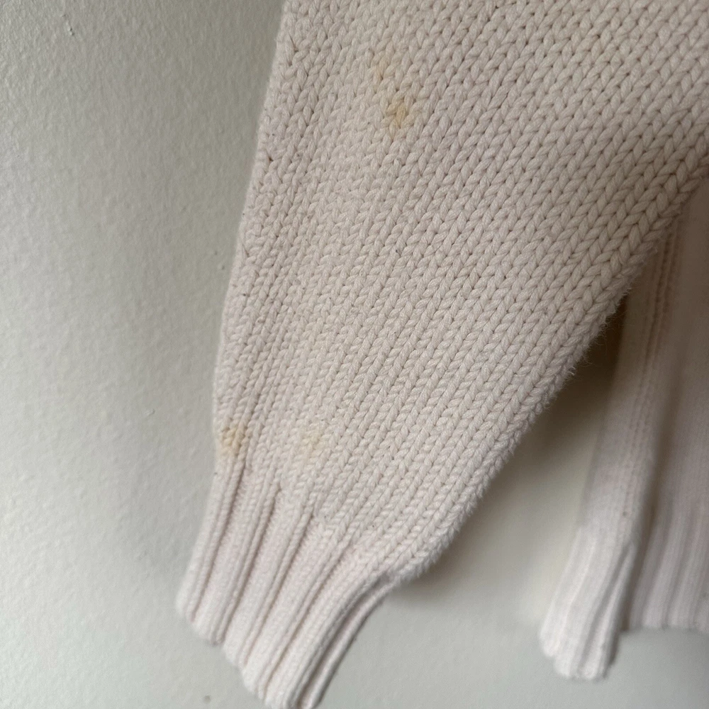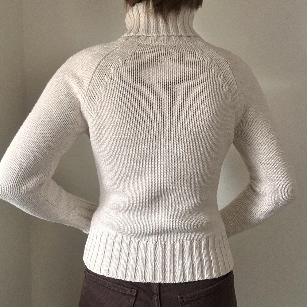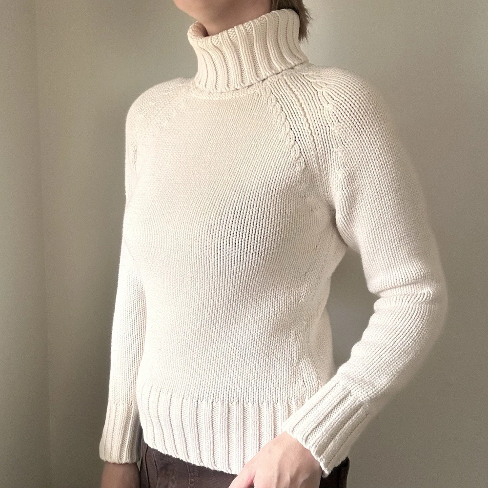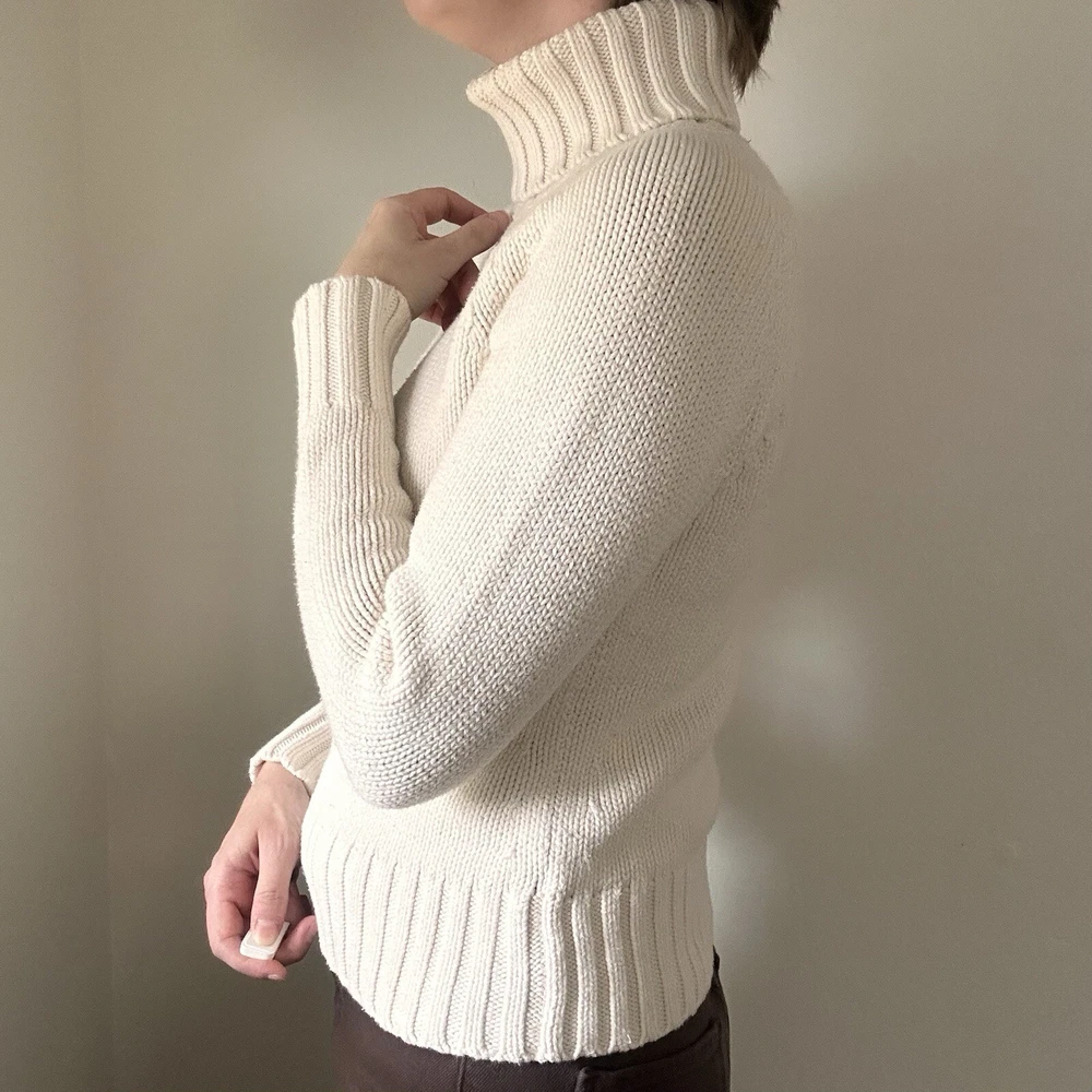 Vintage cream chunky turtleneck sweater. Very classic style, featuring raglan sleeves, chunky ribbed turtleneck, and wide ribbing on the hemline and cuffs. There are two stains on the underside of the right arm. They could probably still be treated out. I just didn’t notice them until after I washed it. Brand is Gap Tagged size S Cotton/Acrylic blend Measurements Pit to pit: 16” Length: 22.5” *model is size S/M, 29”waist, 5’8” tall #vintage #90s #y2k #rorygilmore #sweater knit chunky cozy winter fall cottage cabin prairie Gilmore girls warm basics essential minimalist versatile layers style aesthetic professional business casual