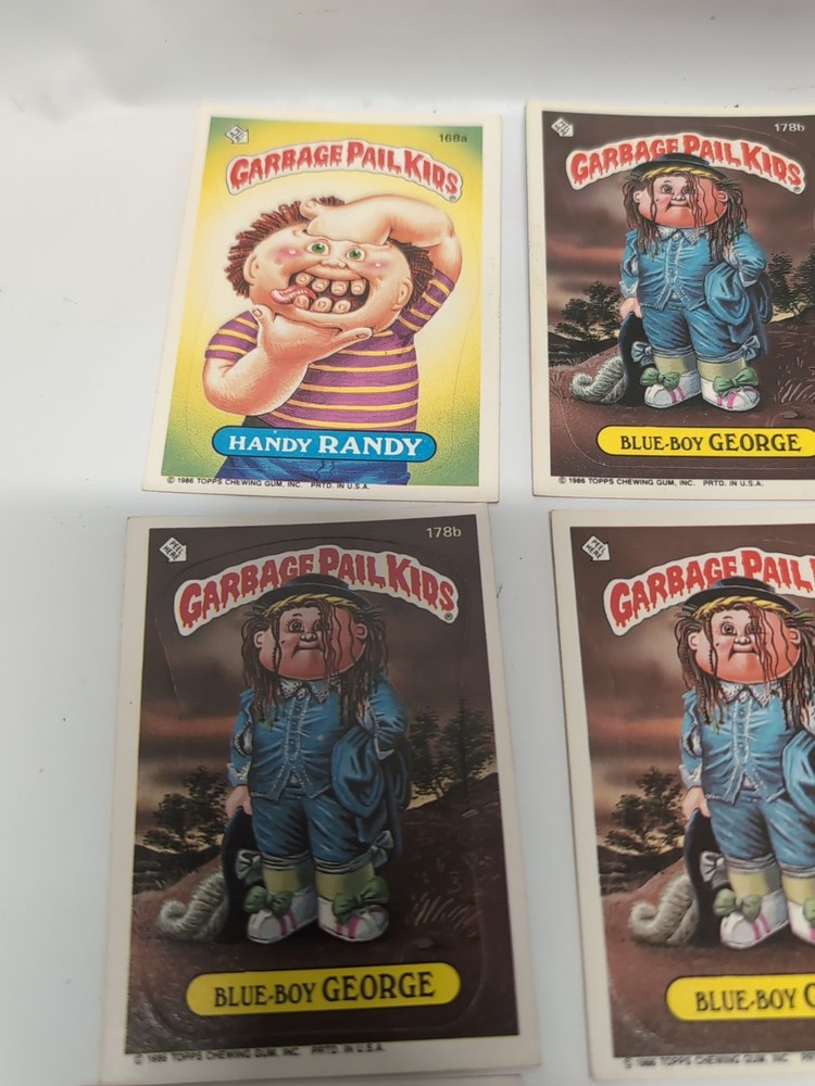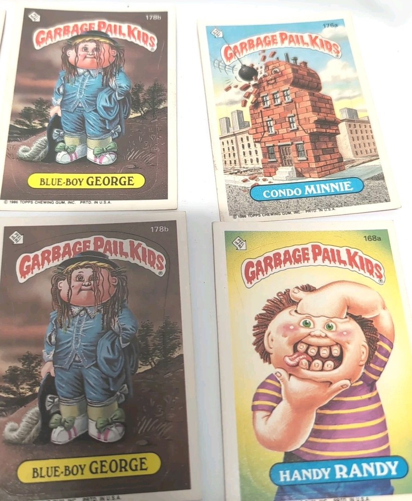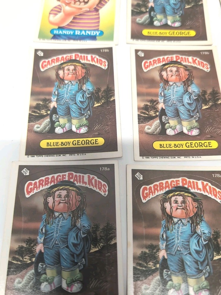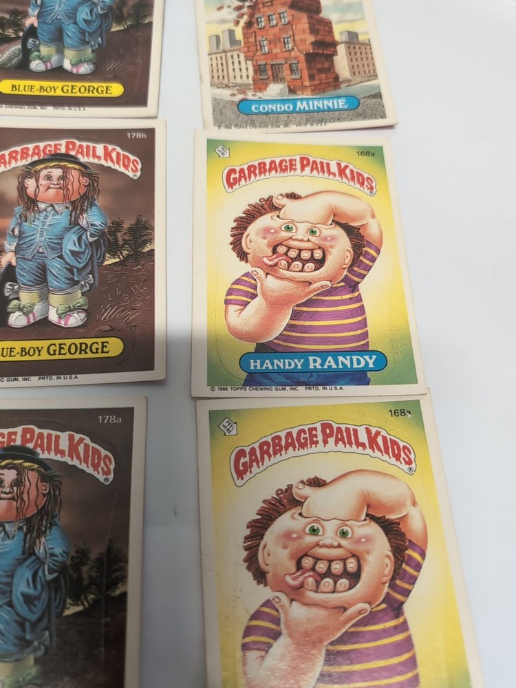 This is a lot of 9 vintage Garbage Pail Kid trading cards. These cards are part of the Non-Sport Trading Card category and are perfect for collectors of Garbage Pail Kids memorabilia. The lot includes various designs and characters from the franchise.