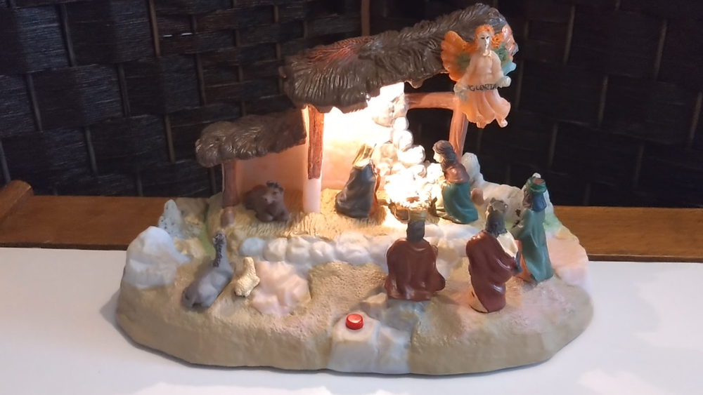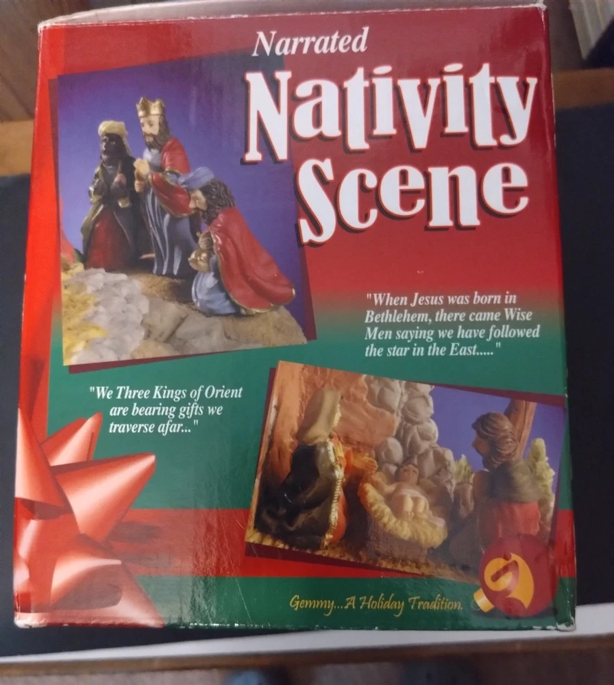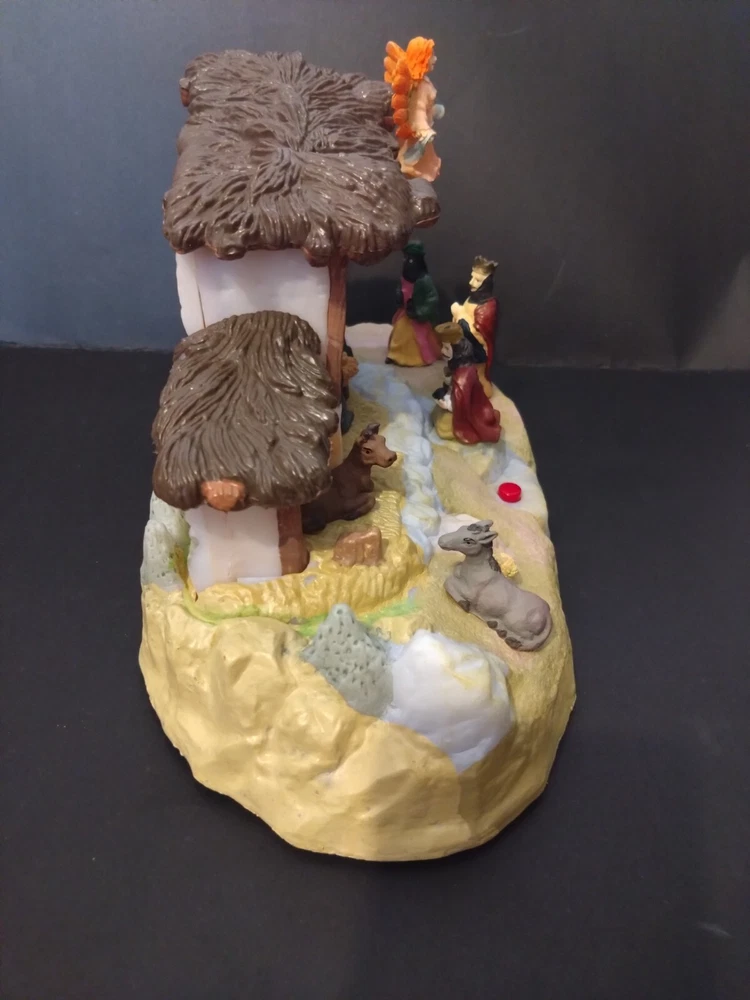 This vintage Nativity scene is a charming holiday treasure! The narration and singing bring the story of Jesus' birth to life, and the dramatic lighting adds a magical touch. It’s in great working condition, just needs batteries. The original packaging shows some wear, but the set itself is lovely—perfect for adding nostalgic warmth to your Christmas decor. A must-have for collectors or anyone who loves classic holiday displays!