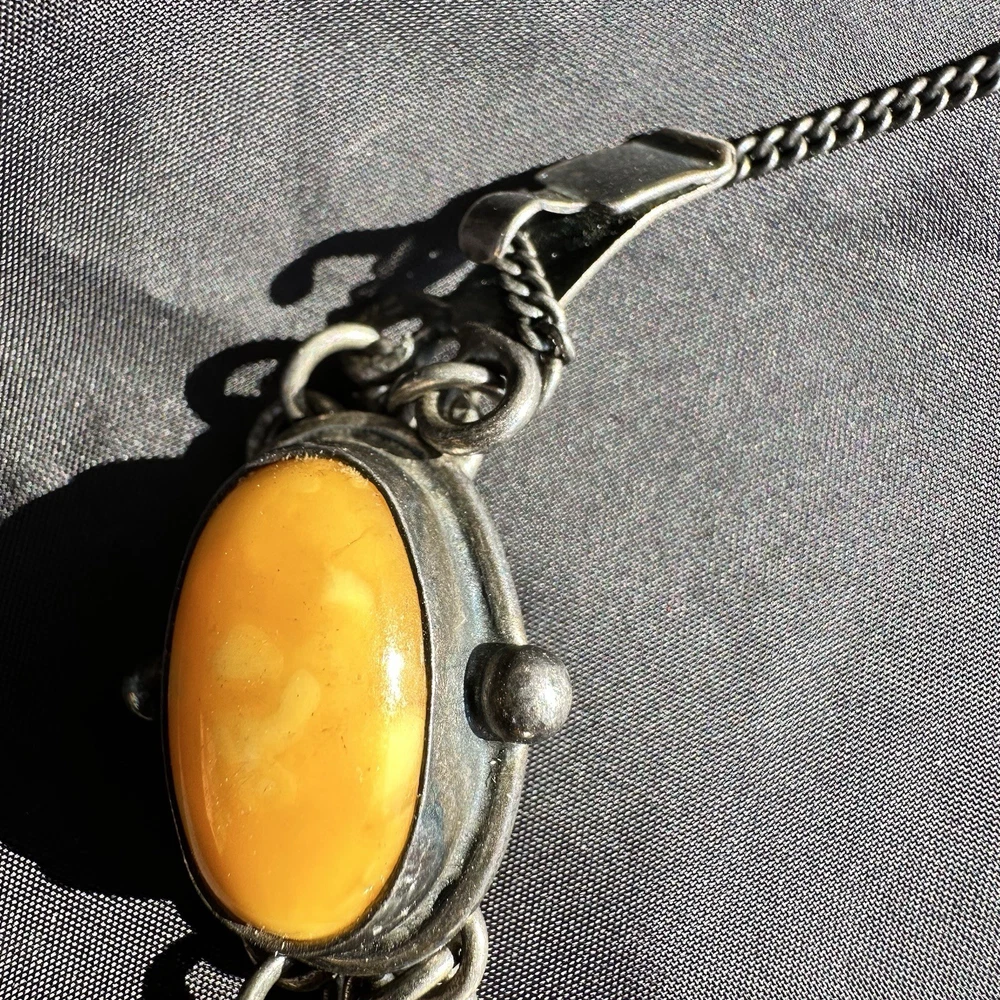 This unique bracelet is a stunning piece crafted in Sterling Silver 925. The oval-shaped Amber stones in yellow color add a touch of beauty and nature to the retro-themed jewelry. With a unique chain style and 8 gemstones, this bracelet is perfect for special occasions like Mother's Day, Christmas, anniversaries, birthdays, and Valentine's Day. Signed by the brand Riga JF, this original piece from the 1950s exudes elegance and charm, making it a perfect gift for women who appreciate vintage and ethnic jewelry. Weight - 47 grams. There are my other items... https://www.ebay.com/usr/universeofjewelry