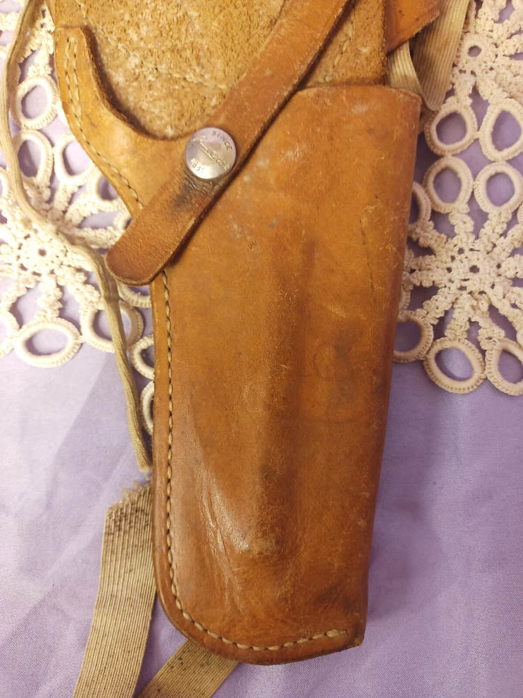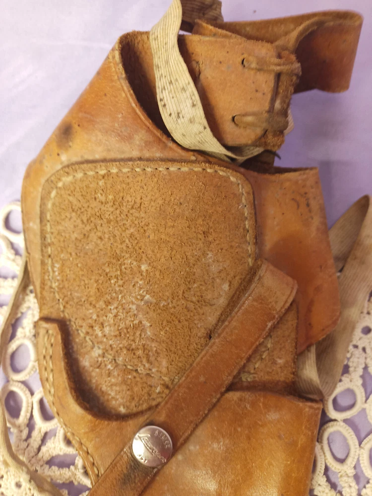 This vintage George Lawrence holster is a must-have for any cowboy or Western enthusiast. With its classic design and durable construction. Made by a trusted brand in the industry, this holster is sure to impress. Whether you're hunting in the field or just looking for a stylish accessory to complete your Western outfit, this holster is the perfect choice. Its unique design and high-quality materials make it a standout piece that is sure to turn heads. So why wait? Add this vintage George Lawrence holster to your collection today!