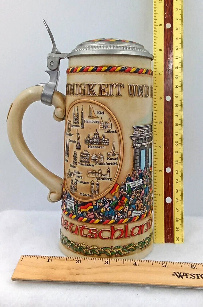 This vintage German beer stein is a fantastic find! The detailed "Einigkeit und Recht und Freiheit" design and sturdy unification lid give it authentic charm. The minor scuff on the bottom doesn’t detract from its beauty—check the photos for details. The seller packs with care, ensuring safe delivery without hidden fees. Perfect for collectors or as a unique decor piece. Highly recommend The Burly Owl Lady for more great items!