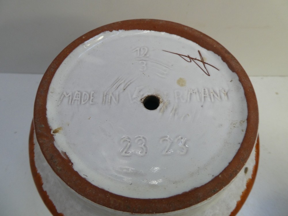 VINTAGE GERMAN POTTERY MID CENTURY POT PLANTER URN VASE #23 23 TO BASE 14 CM HIGH 16 CM DIAMETER GOOD CONDITION - NO SAUCER PLATE STAMPED / MARKED TO BASE SEE PHOTOS FOR BEST GUIDE TO CONDITION I AM LISTING SOME OTHER ESTATE PIECES I can combine for postage. CHECK MY OTHER LISTINGS FOR MORE