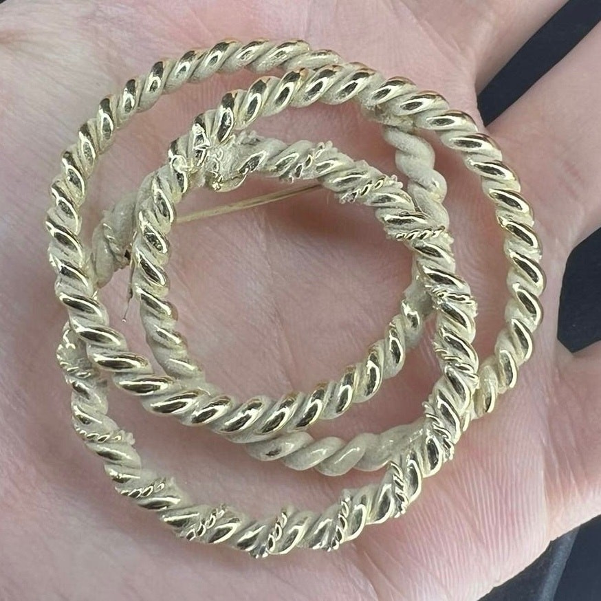Vintage Gerry's Gold Tone Overlapping Circle Rope Brooch Pin Statement