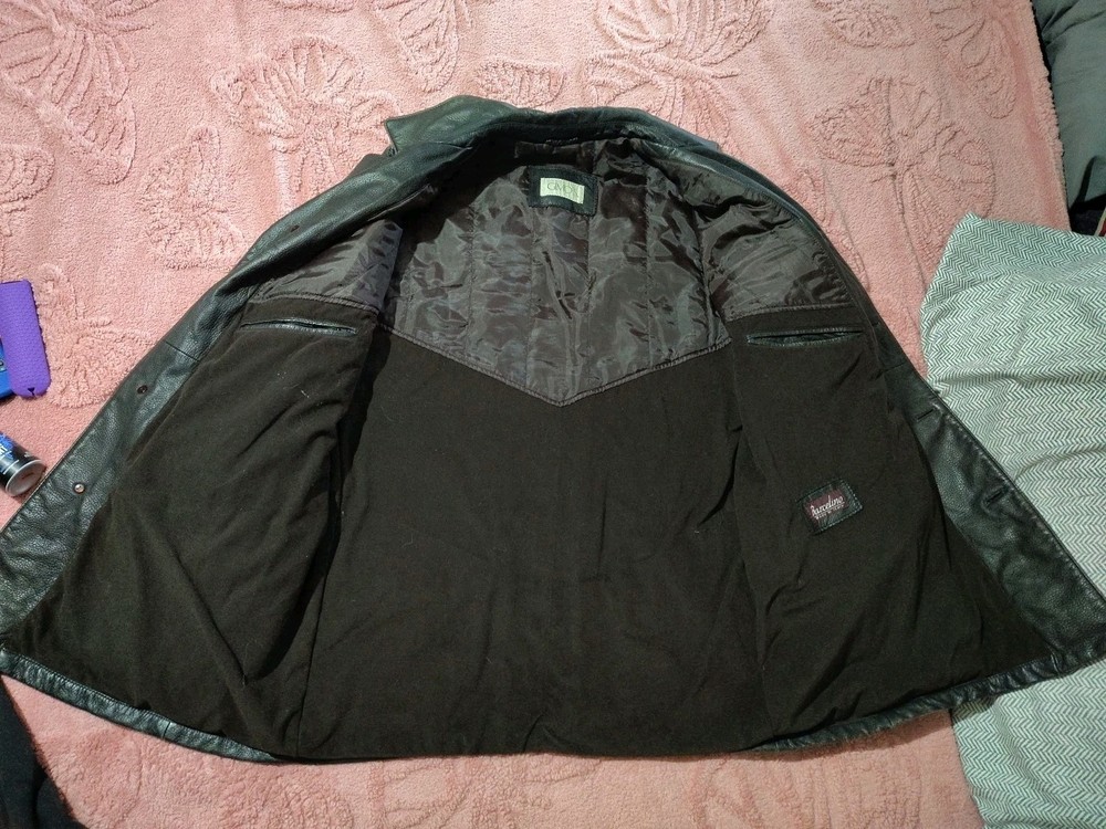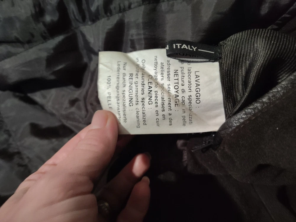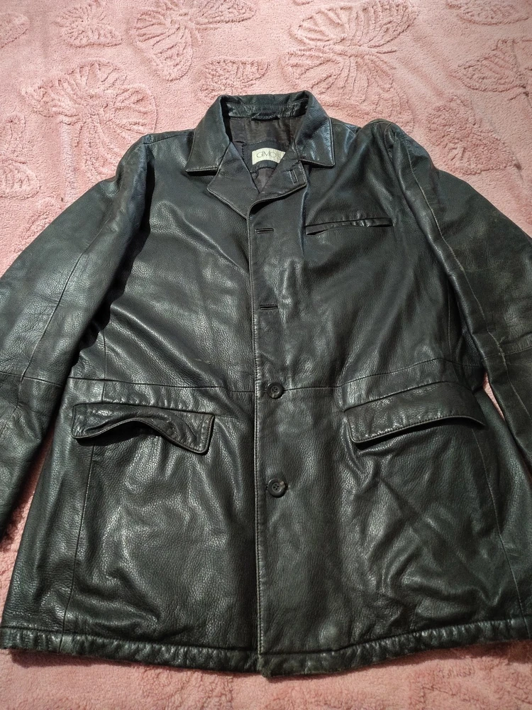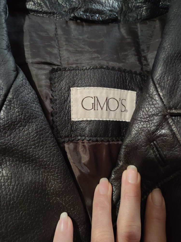 THIS JACKET IS AN OVERALL GOOD CONDITION THERE IS A IMPERFECTION OR TWO IN THE LEATHER THAT I TRIED TO TAKE A PICTURE OF, PLEASE SEE PHOTOS OVERALL GOOD CONDITION. NOT SURE IF IT IS MISSING A BUTTON OR NOT? The Vintage Gimo's Leather Jacket in size Large is a classic piece made in Italy. The dark brown color and leather outer shell give it a timeless and designer appeal. This heavy coat style jacket features a zip and button closure, lined interior, collared neckline, and pockets for added functionality. Made with high-quality viscose lining material, this jacket is perfect for a dry clean only to maintain its authenticity and sophistication. Ideal for men looking for a rugged yet stylish addition to their wardrobe.