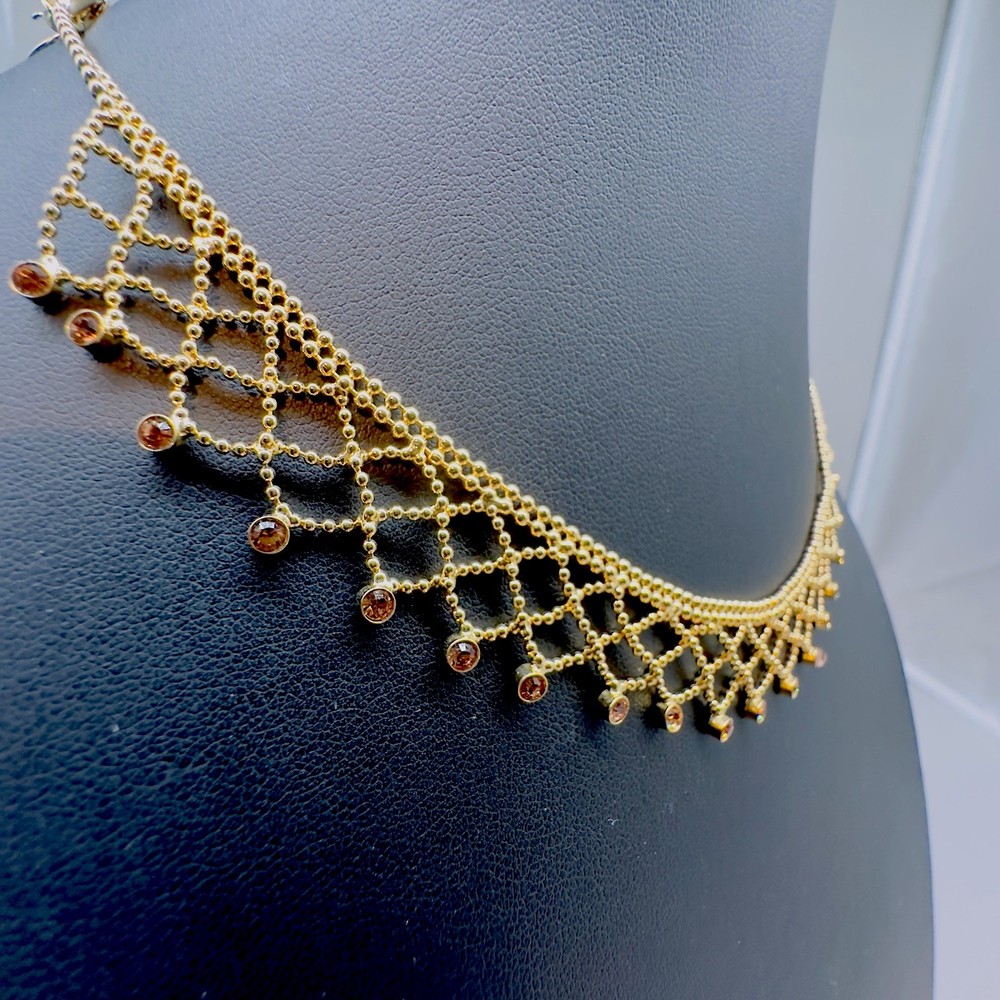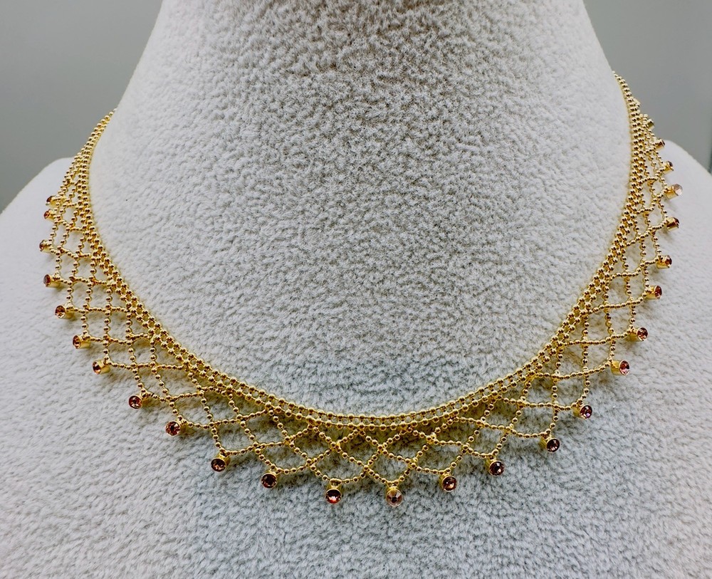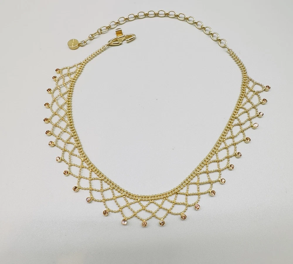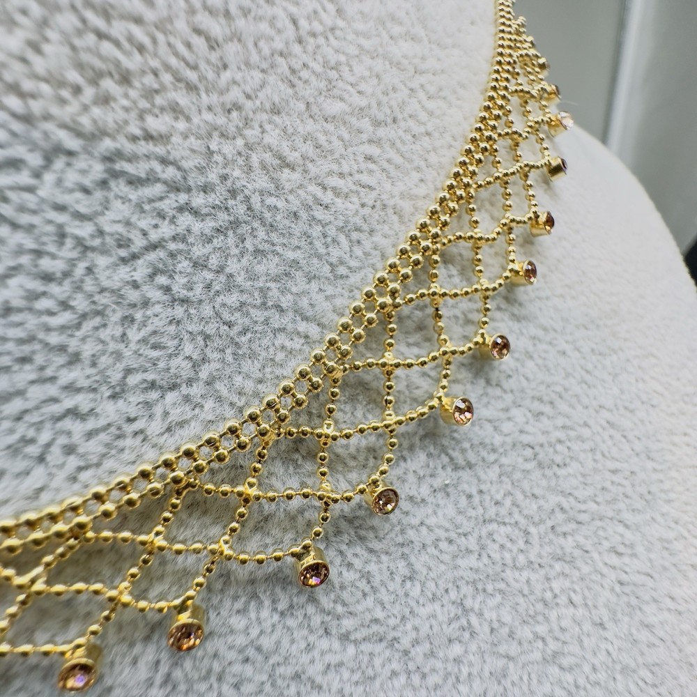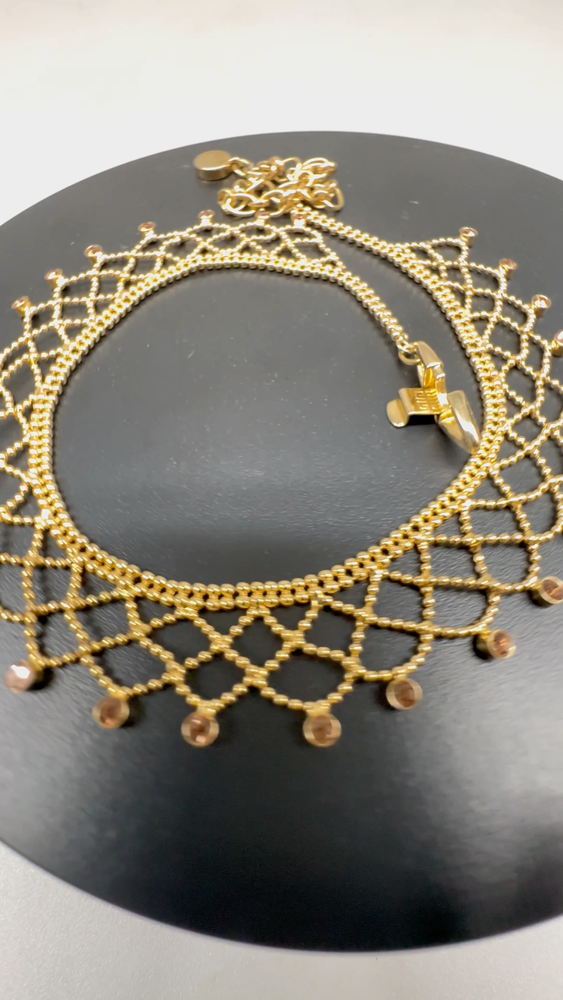 Brand:GivenchySigned:YesNumber of Gemstones:26Type:NecklaceNecklace Length:17 inClosure:Fold Over ClaspMain Stone Color:GoldMaterial:LaceChain Type:Ball/BeadColor:GoldDepartment:WomenStyle:ChokerMain Stone Shape:RoundMain Stone:Crystal
