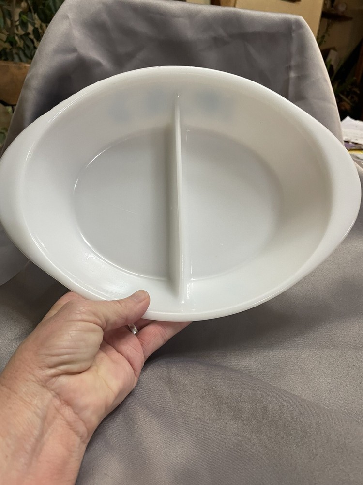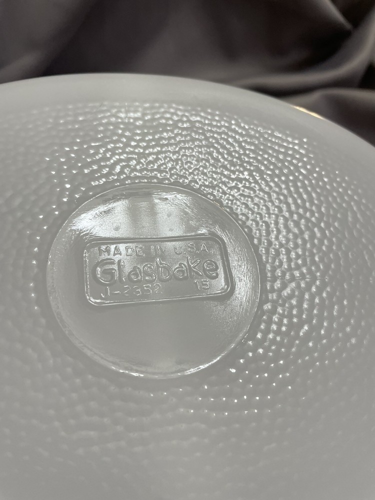 Rare vintage Glasbake casserole dish with blue thistle print In excellent condition. Likely manufactured in the 60s.