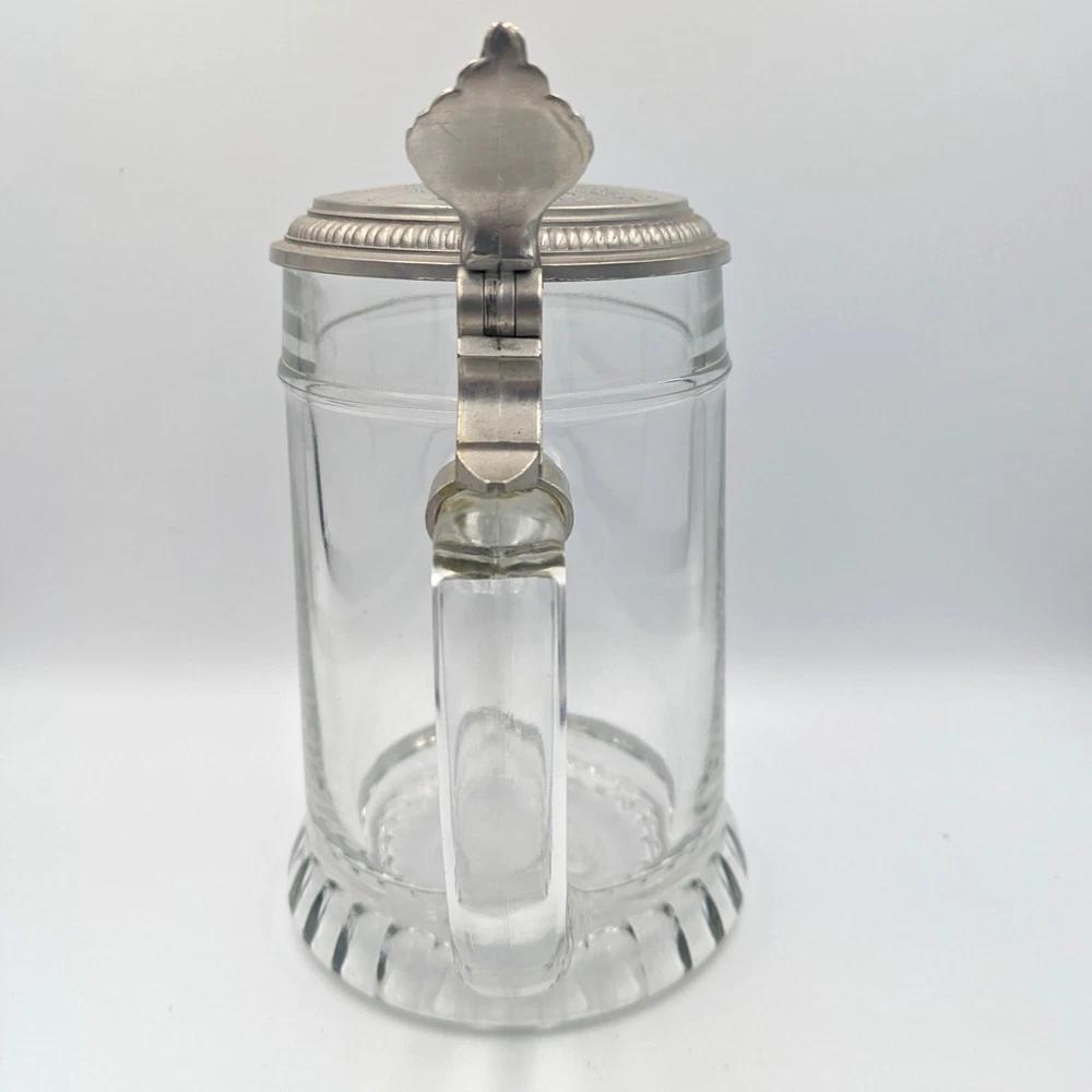 Vintage Glass Beer Stein with Pewter Lid Etched Design BMF West Germany This vintage glass beer stein with a pewter lid is a must-have for any collector. Made in Germany, the stein features an etched elk, stag, or deer design that is both intricate and eye-catching. The pewter lid adds an extra touch of elegance to the piece. Whether you're a beer enthusiast or just appreciate decorative pieces, this stein is a great addition to any home. The engraving, which reads "Jim," adds a personal touch to the already unique piece. Don't miss out on the opportunity to own this one-of-a-kind stein. Condition: This glass stein is in great vintage condition with no chips, cracks, or flea bites. The item is used and may exhibit slight signs of use/wear and very minimal scratching. HISTORY: On April 2, 1902 the two friends Hans Wagner and Willy Gundel founded the Bavarian Hardware Factory in Nuremberg, BMF for short. The firm produced "luxury and utility articles" and was one of the leading firms in the metal working sector for decades. The family firm was sold in 1991 and in 1998 the new owners also had to file for bankruptcy. To commemorate the work of the owners and managers of the company - Hans Wagner, Willy Gundel, Max Wagner und Dr. Norbert Streng -the BMF Museum was set up in three rooms of the former factory premises of the firm on the occasion of its 101 anniversary. **NEW USER SPECIAL OFFER & GUARANTEE** I will be offering REDUCED SHIPPING to US/CANADA / INT'L as I strive to earn the trust of buyers quickly, ship expertly and offer great deals. Please bid with confidence and you will not be disappointed. Experienced Glass / Ceramic Shipper.