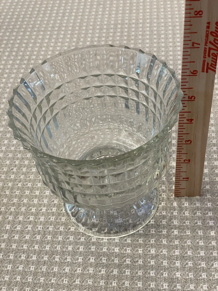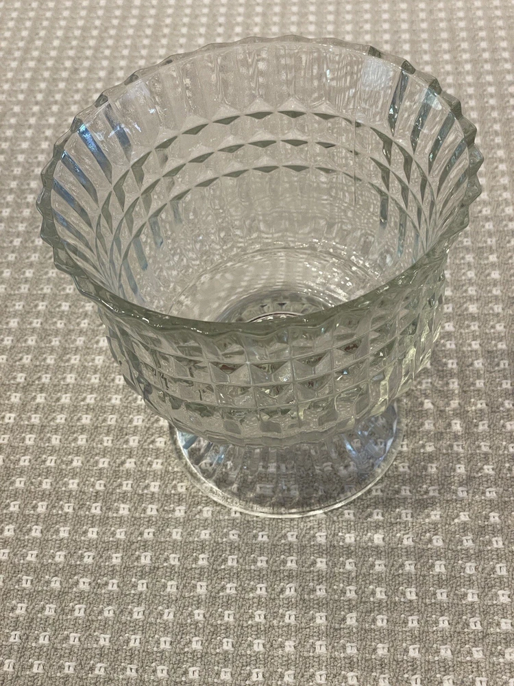 Vintage Clear Glass Ribbled Pedestal Candy/Trinket Bowl Dish FTDA 1986 Holiday "Excellent Pre-owned Condition" "Absolutely Beautiful" "All items from Smoke Free Home" "Please view pictures provided" "I Ship FAST!" "Thank you for looking"