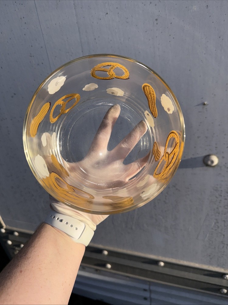 Movie Time Cinema Ice Snack Glass Bowl Bucket POPCORN PRETZELS PEANUTS Vintage