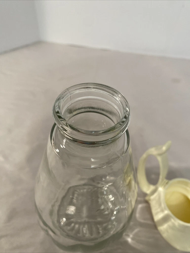 Vintage Glass Syrup Dispenser Bottle w/ Pour Lid. Condition is Used. Shipped with USPS Ground Advantage.