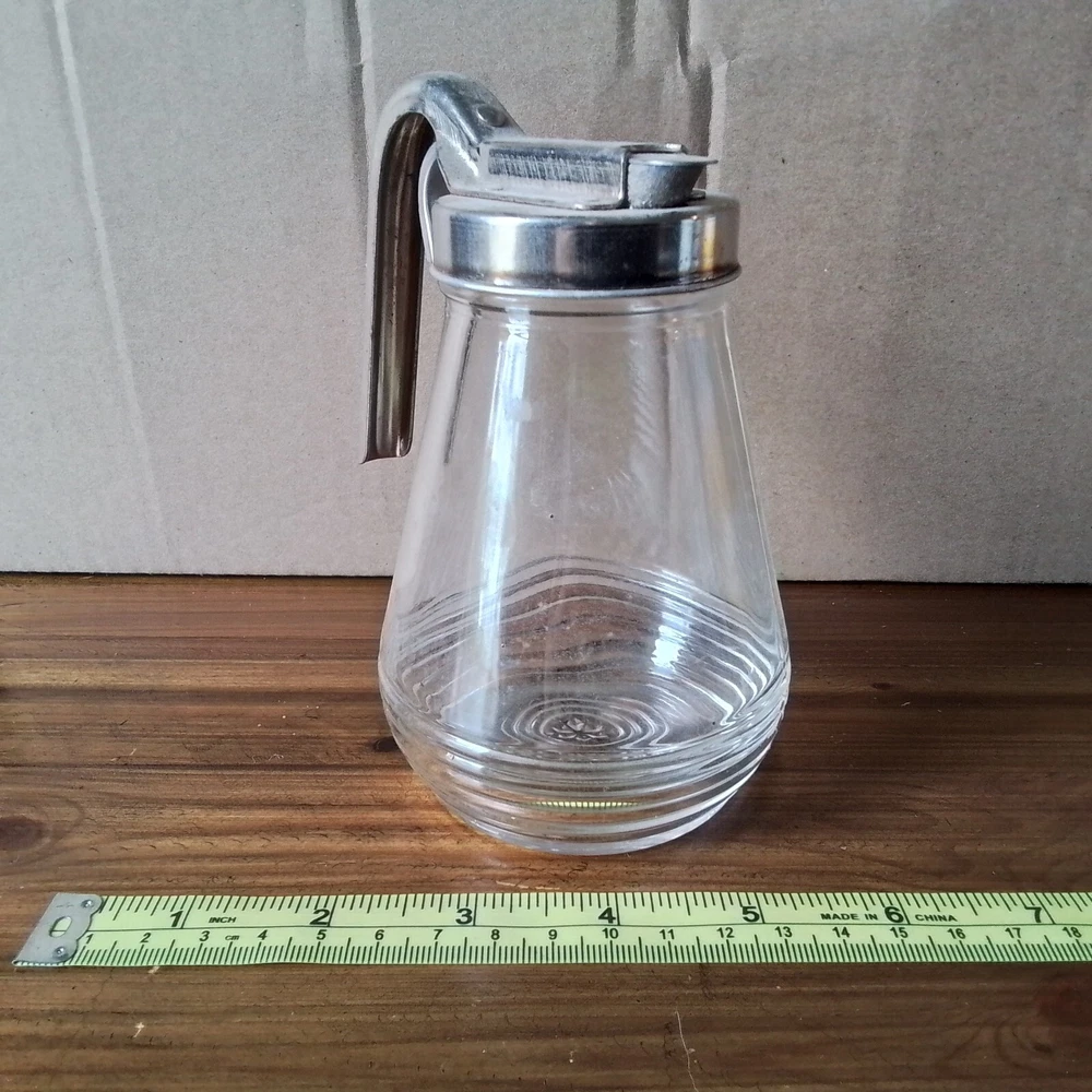 Vintage Glass Syrup Dispenser w/Metal Top. Condition is Used. Shipped with Economy Shipping.