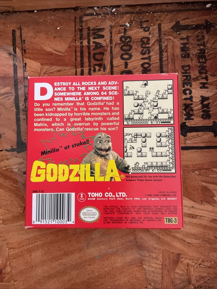Up for sale is a boxed copy of Godzilla for the Nintendo Gameboy. The condition is near mint with minimal wear present (see pics for more details). Game comes from my personal collection and is well cared for (comes with box Protector).