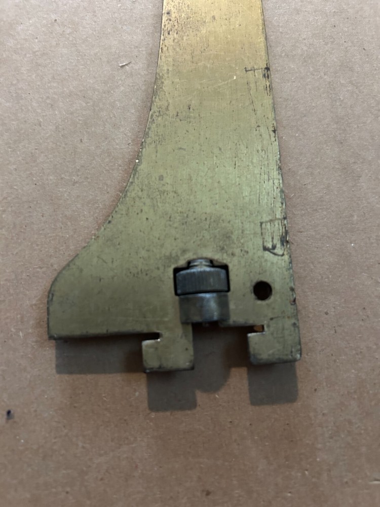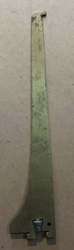 Enhance your shelving with this Vintage Adjustable Metal Shelf Bracket , measuring 12" x 2.5". Featuring a unique screw-tight adjustment mechanism, this heavy-duty bracket ensures a secure fit for a variety of shelving applications. The durable gold-finish metal construction provides a timeless, vintage aesthetic. While minor surface wear is present, the bracket remains fully functional and ideal for home, office, or garage setups.