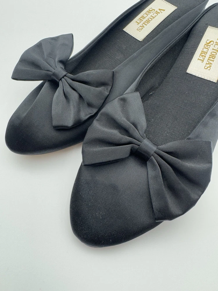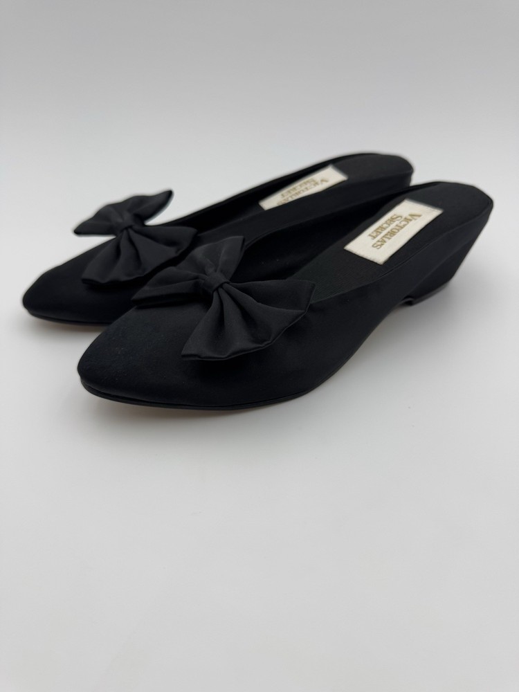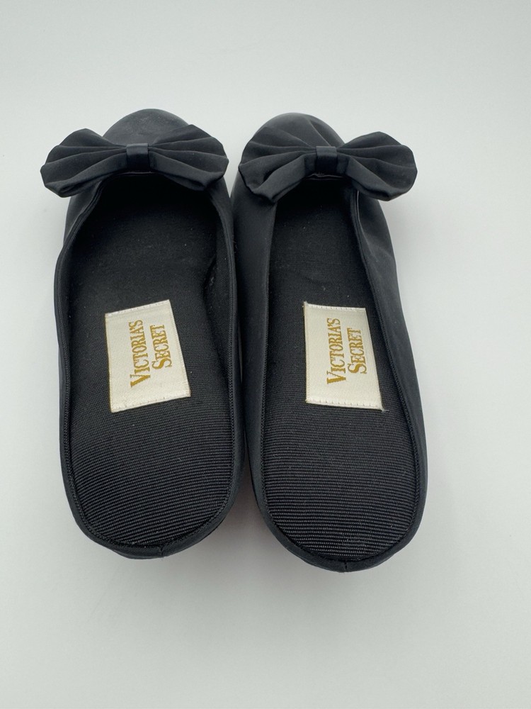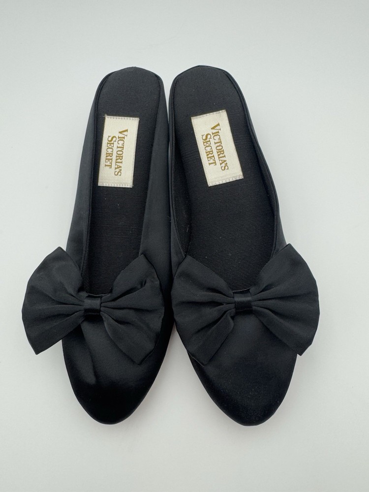 Lining Material: Fabric AU Shoe Size: X Heel Height: Low (1-1.9 in) UK Shoe Size: X Insole Material: Fabric Theme: 90s, Classic Fabric Type: Satin Color: Black Style: Slide Accents: Bow Character: Victoria Type: Slipper EU Shoe Size: X US Shoe Size: 7 Pattern: Solid Model: X Outsole Material: Synthetic Department: Women Upper Material: Fabric Customized: Yes Brand: Victoria's Secret Vintage: Yes