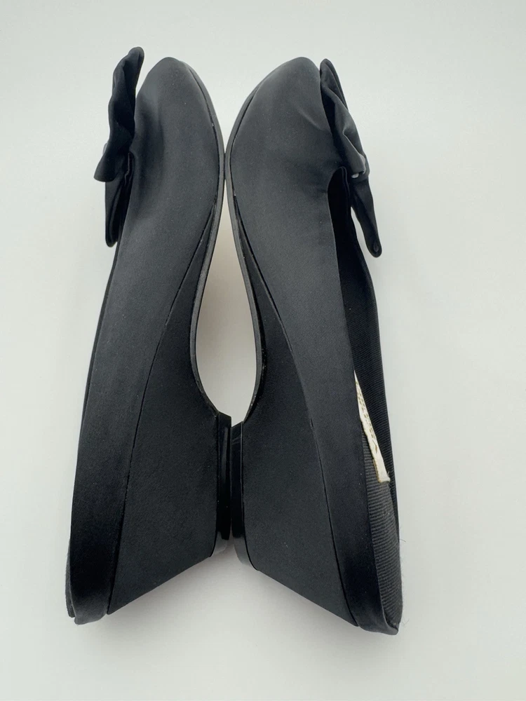 Vintage Gold Label Victoria Secret Satin Wedge Slippers 7/8 Black Women’s