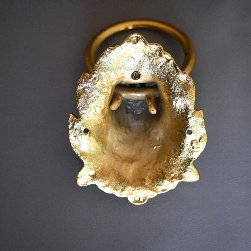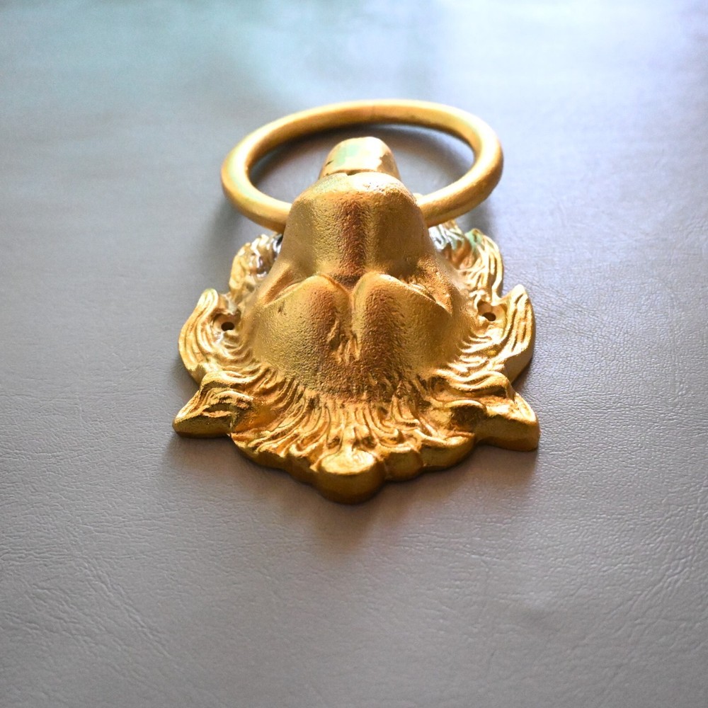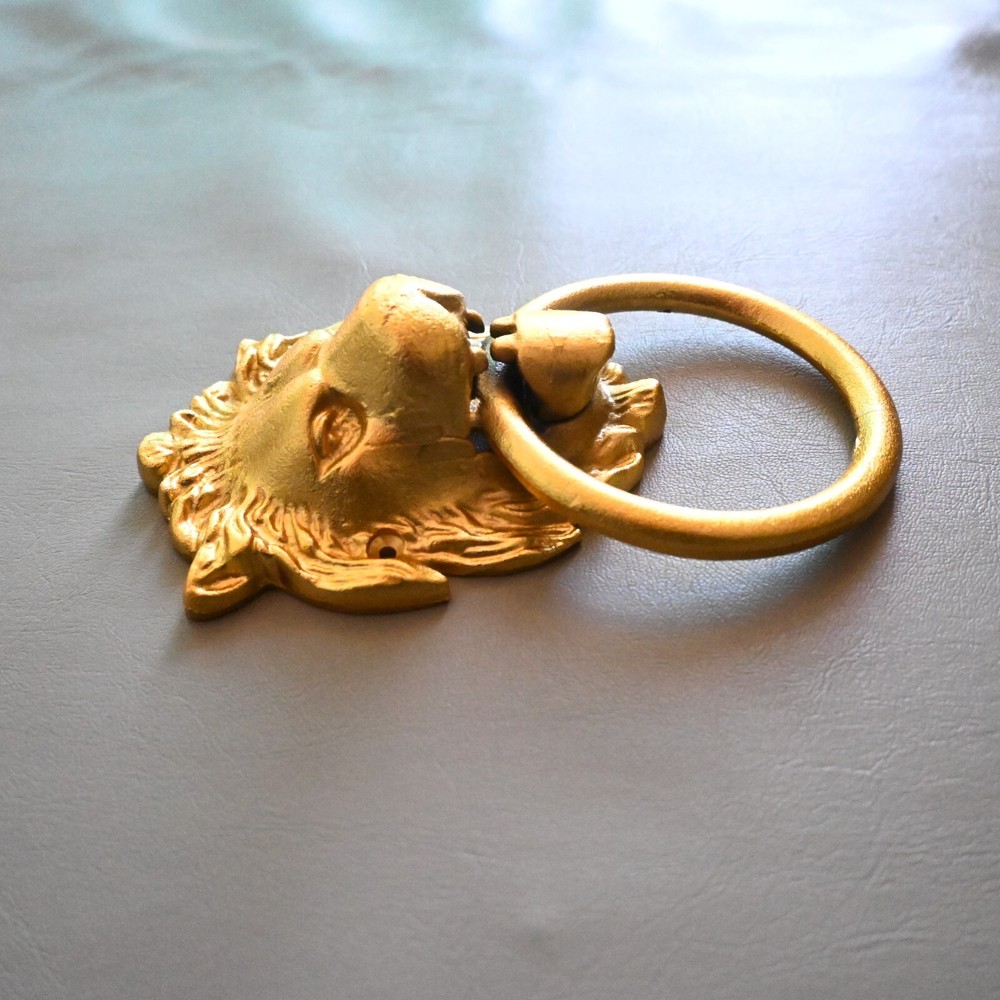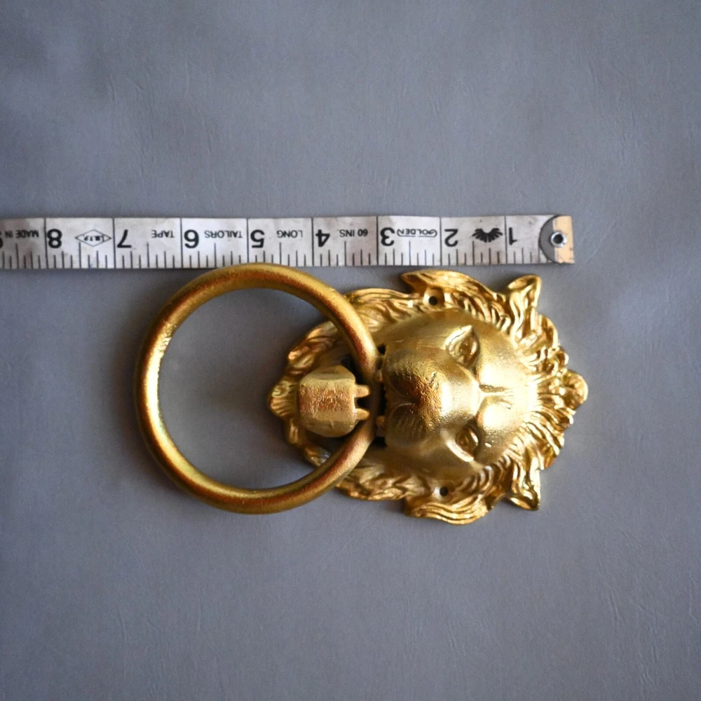 UP FOR SALE Vintage style cast iron gold painted lion door knocker. Cast iron lion with cast iron ring . Heavy weight lion knocker. Item as found condition Size = See images Please do visit my Store . We have great variety of rare tools , military knifes and dagger/khanjar etc. Please note = images are also the part of description so please see the images carefully before buying. If you want any extra details regarding products please contact us . We look forward to assist you. SHIPPING Shipping will take 10 to 15 days or more depends on location and situation. We will ship by any international or domestic courier company . "Happy buying "