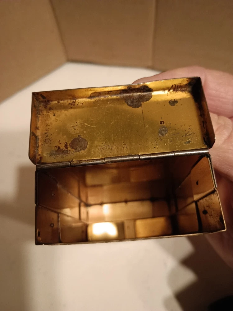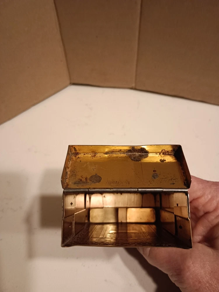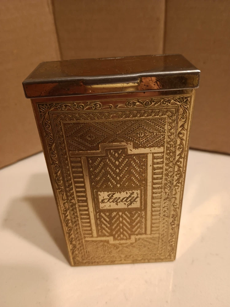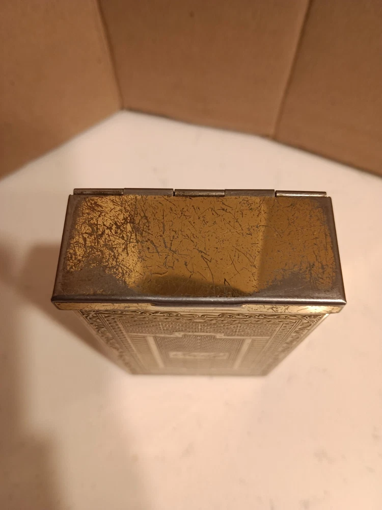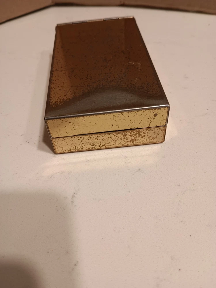 This vintage cigarette case is a must-have for collectors of tobacciana. It features a classic gold tone and was likely crafted in the United States. Despite its age, this case has been well-preserved and is ready to be displayed in your collection. Whether you're a smoker or a collector, this vintage cigarette case is a unique addition to your collection. Its timeless design and quality craftsmanship make it a true gem. Don't miss your chance to own this piece of history.