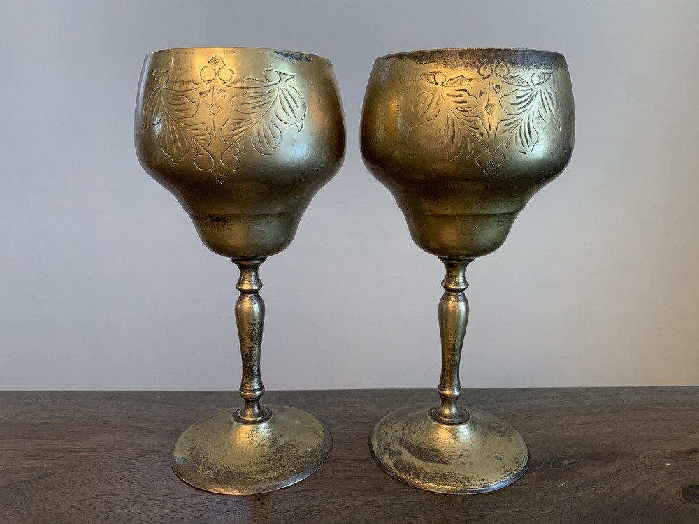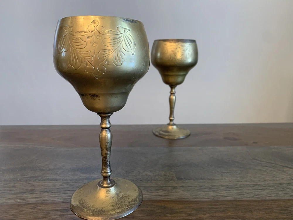 Absolutely stunning vintage goblets! The intricate etching and gold tone finish give them such elegant charm. They arrived in perfect condition with that lovely aged patina that adds character. These beauties elevate any table setting and feel wonderfully substantial in hand. A true timeless treasure!