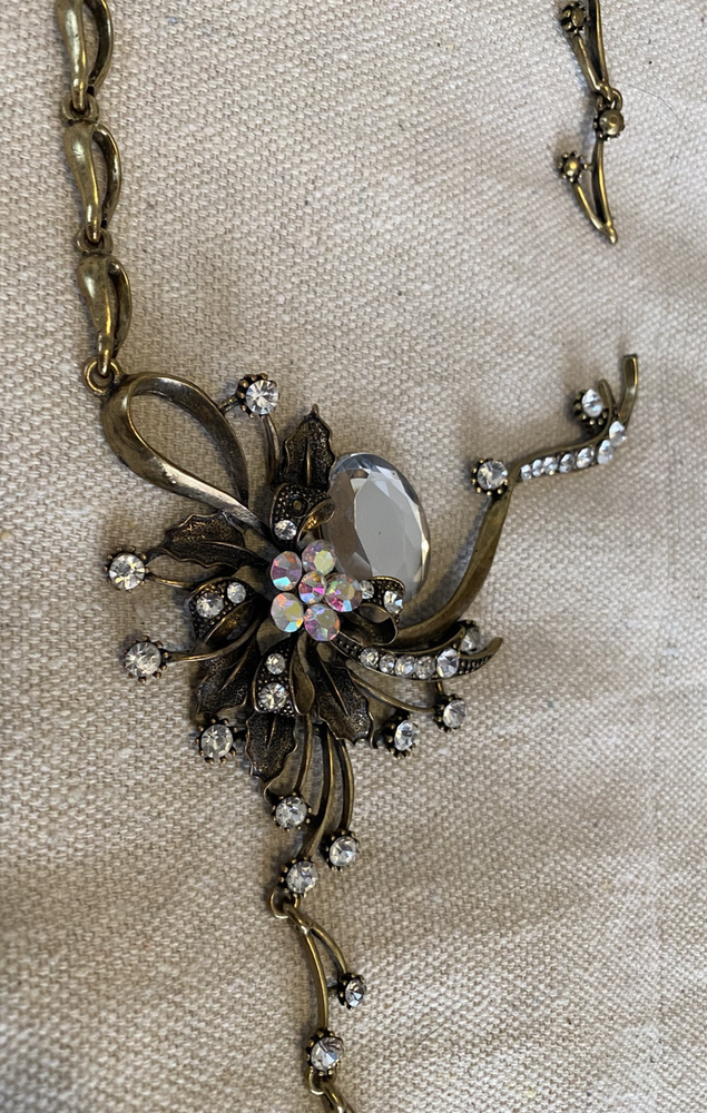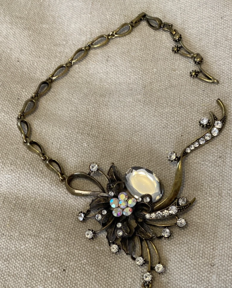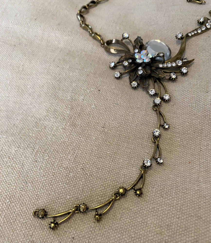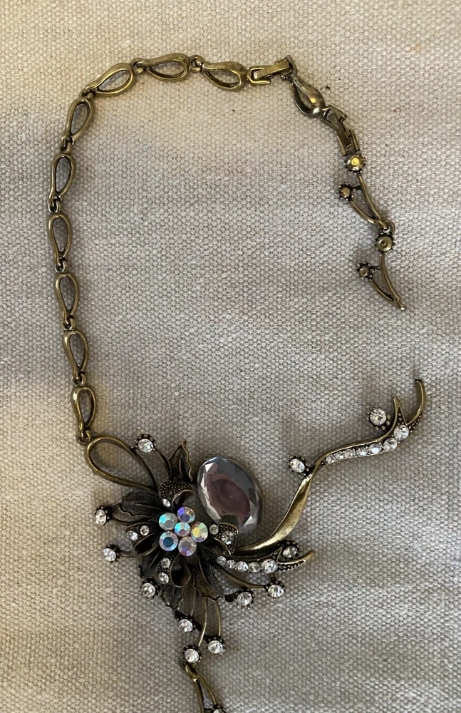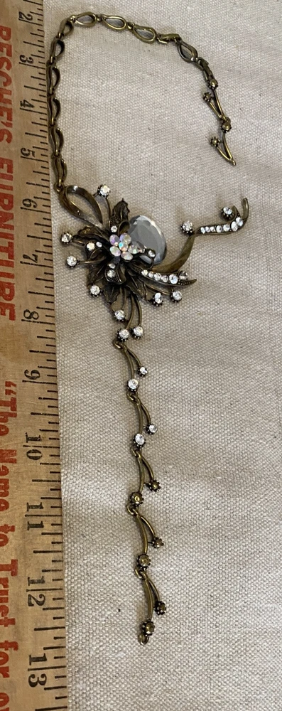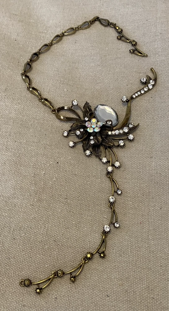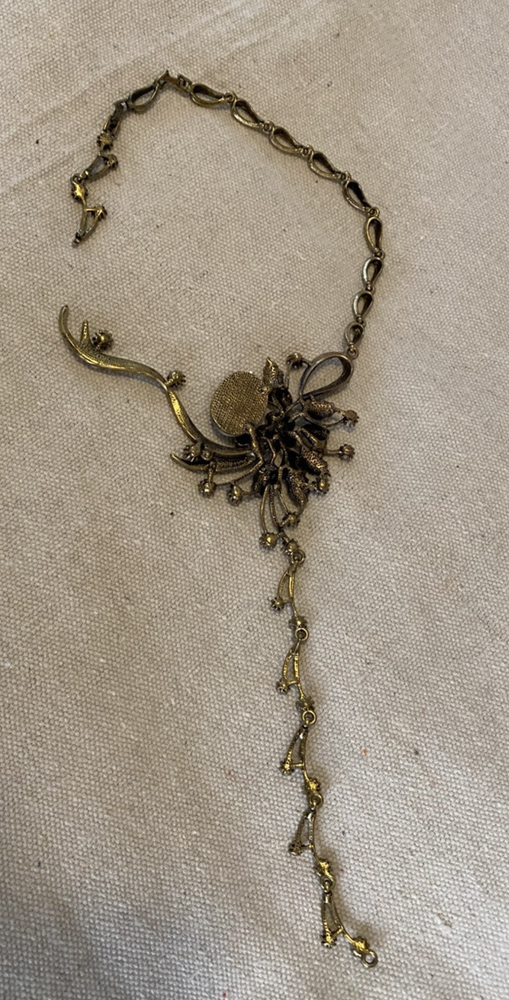 Vtg Flower Pendant Necklace Large Gold Tone Floral Costume Jewelry -Needs Repair Good pre-owned condition with flaw. Left side of necklace broke, needs to be repaired and joined back together. -Floral Pattern -Faux Jewels -Chained -SKU E25-029 -Measurements in Photos Questions? Please ask. Ships next business day. Offers welcome.