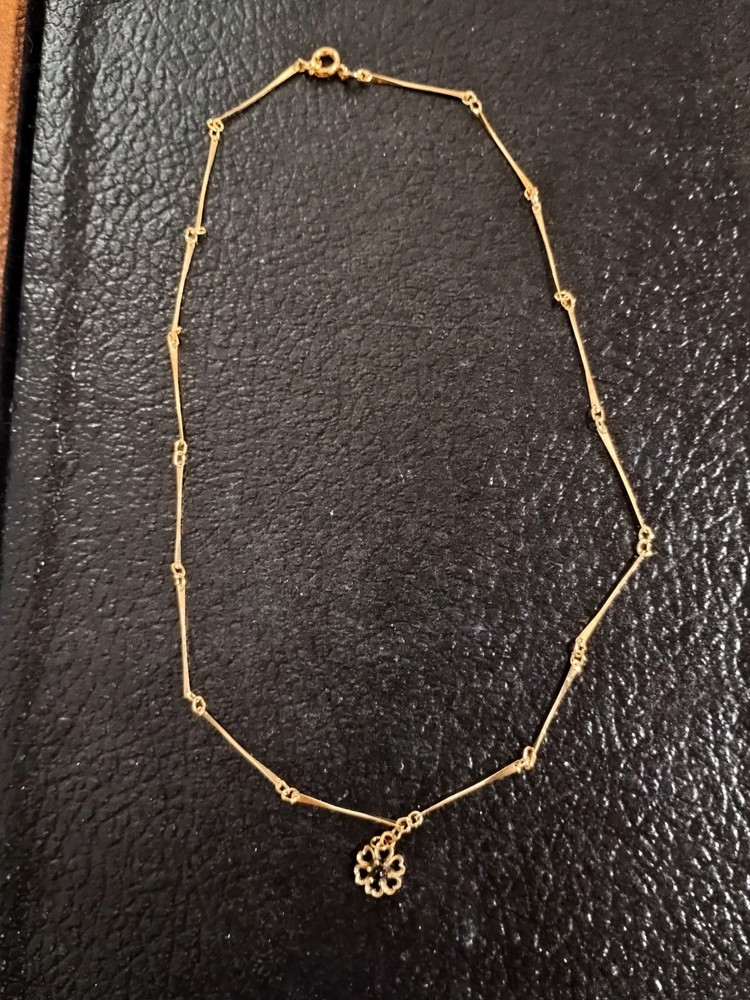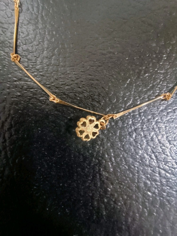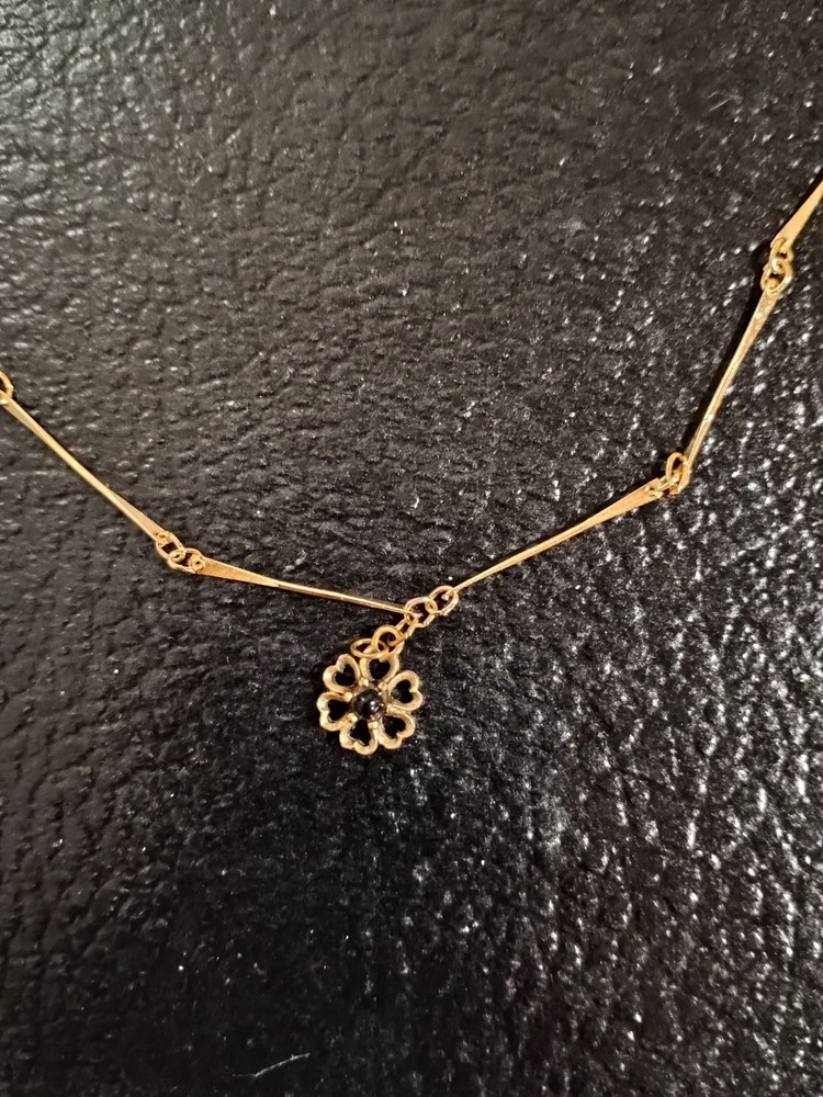 This Vintage Gold Tone Flower Necklace features a beautiful flower pendant with a purple stone as the main focal point. The necklace is crafted with a gold base metal making it a unique and stylish accessory. The spring ring closure ensures a secure and comfortable fit, adding to the overall charm and elegance of the piece. Perfect for those who appreciate vintage and antique jewelry, this necklace adds a touch of floral sophistication to any outfit.