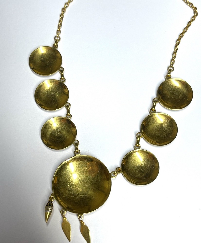 Vintage Gold Tone Spanish Damascene Style Medallion Necklace 18” in Length Be sure to see Photos Thanks for Looking