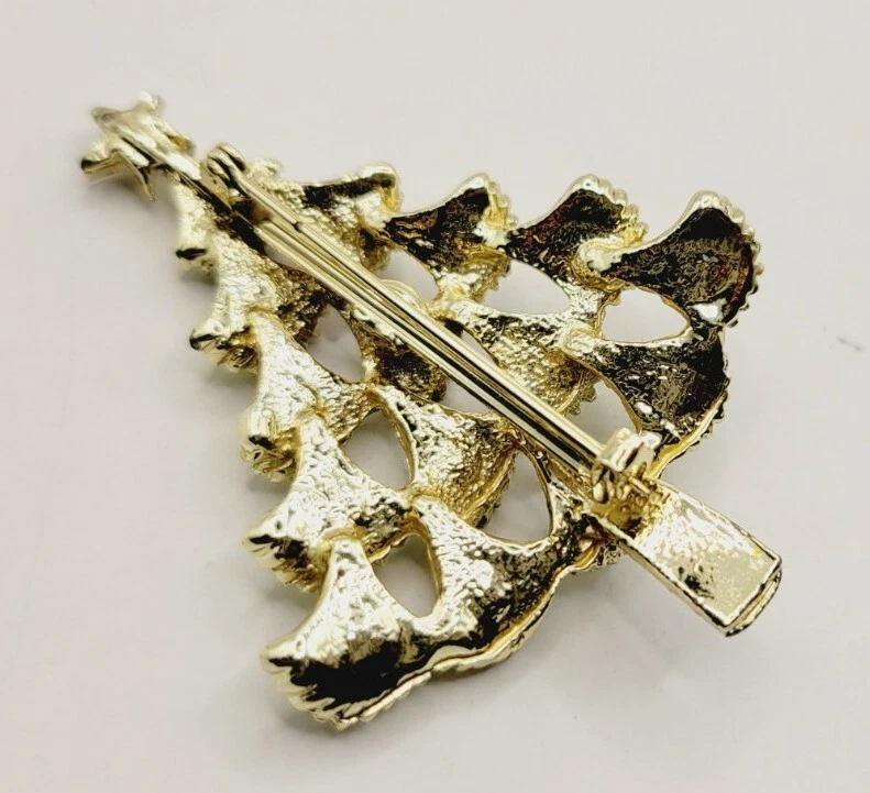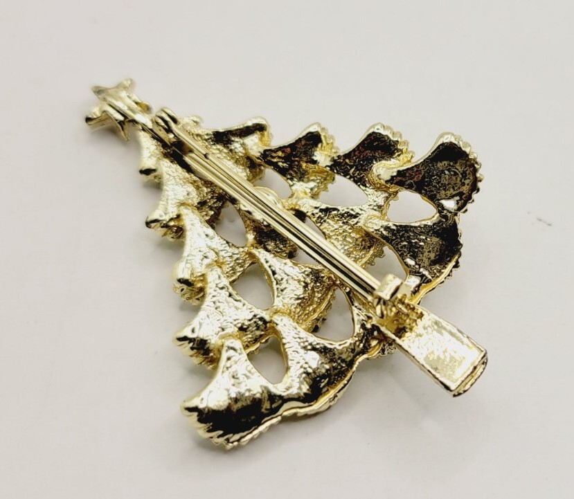 HomeVintage Gold Tone Victorian Christmas Tree Brooch with Star Holiday Pin A12