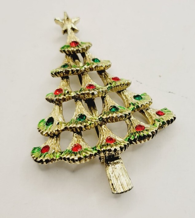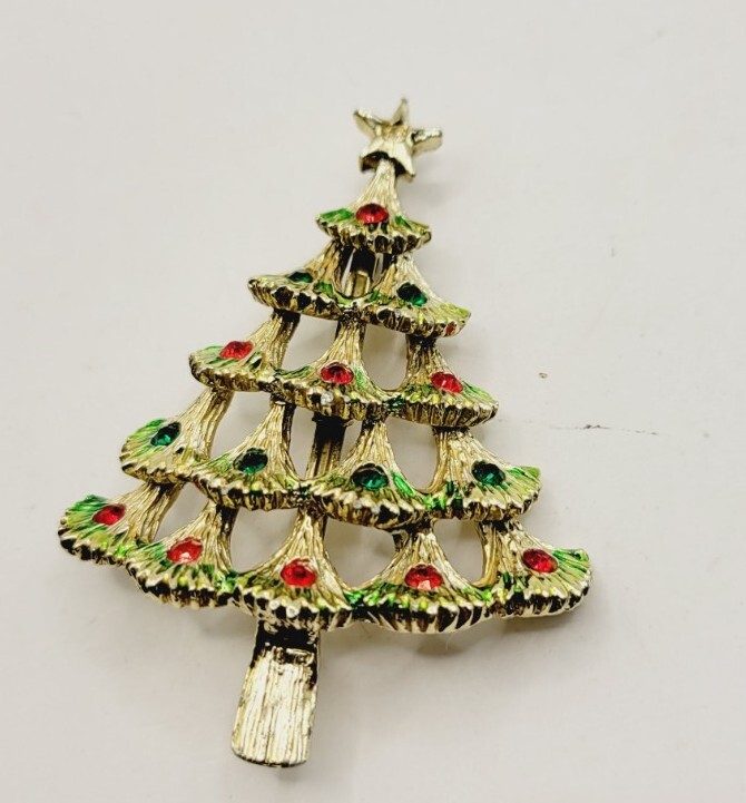 Main Stone Color:MulticolorTheme:Flowers & Plants, Holiday, Christmas TreeCustomized:NoShape:Christmas TreesHandmade:NoWholesale:NoSeller Warranty:NoColor:Gold toneEra:UndatedBrand:Estate Christmas JewelryMain Stone:RhinestoneItem Length:2.5" x 1.75"Jewelry Department:FashionOriginal/Reproduction:OriginalBase Metal:UnknownType:BroochVintage:YesMetal:UnknownOccasion:ChristmasMaterial:CrystalDepartment:WomenAntique:Nogtin13:Does not applySigned:NoUPC:Does not apply