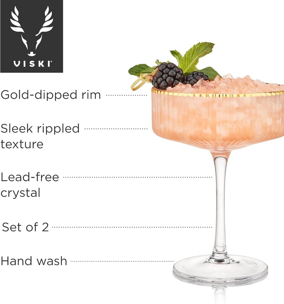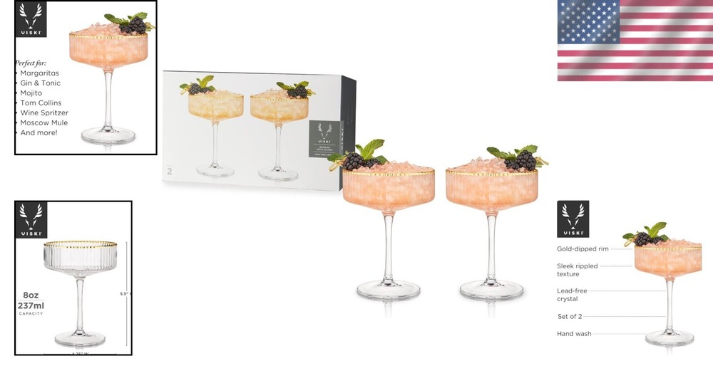 Elegant Gold-Rimmed Crystal Coupe Glasses - Vintage Drinkware Set for Cocktails ‹ › ‹ › ‹ › ‹ › ‹ › ‹ › ‹ › ‹ › ‹ › ‹ › Elegant Gold-Rimmed Crystal Coupe Glasses Vintage Drinkware Set for Cocktails Features: Crafted from lustrous lead-free crystal for sparkling clarity. Elegant repeating vertical grooves and luxurious gold-dipped rims. Geometric structure with refined stems for a sophisticated look. 11.5 oz. capacity, ideal for serving cocktails like Margheritas, Manhattans, and Negronis. Perfect for parties, special occasions, or beautifully elevating everyday use. Giftable packaging makes it an excellent choice for housewarming, weddings, and birthdays. Benefits: Enhances your cocktail experience with sparkling clarity and a luxe design. Durable and versatile - perfect for both casual and formal settings. Superior craftsmanship ensures long-lasting beauty and functionality. Stylishly complements any home bar or bar cart decor. Thoughtfully designed to serve as a memorable gift for cocktail enthusiasts. Why choose our Crystal Coupe Glasses? Elevate your cocktail experience with our Elegant Gold-Rimmed Crystal Coupe Glasses. Meticulously crafted from lead-free crystal, this stunning set showcases sparkling clarity complemented by a visually captivating rippled texture. The gold-dipped rims and sophisticated stems promise to add a touch of elegance to any gathering, making them perfect for chic soirées or intimate dinners. Whether you're celebrating special occasions or indulging in a midweek treat, these versatile glasses are sure to impress. Gift someone special with these exquisite glasses, and let them enjoy their favorite drinks in style! Experience the perfect blend of luxurious design and professional quality - order your set today! Shipping Free & Fast Shipping - We offer free shipping to most of the USA with a normal delivery time of 3-7 days. However, due to the current situation, additional delivery time (up to 3 weeks) may be required for some items. Alternative Carriers - We may use alternative carriers (e.g. USPS, FedEx, UPS, etc.) to ensure your package arrives safely and on time. Due to the use of multiple carriers, we are unable to provide a tracking number automatically. Handling Time - Orders are processed and shipped within 1-2 business days of receiving cleared payment. Shipping Restrictions - Shipping to Alaska, Hawaii, Puerto Rico, Guam, and other US territories may incur shipping charges or delivery restrictions. Please contact us before ordering, or your order can be refunded/cancelled. State Restrictions - There may be restrictions based on your state of purchase. For example, certain items may not be shipped to California due to state regulations. Contact for Tracking Updates - If you require tracking updates or have any concerns about the delivery of your order, please feel free to contact us, and we will be happy to assist you. Return 30-Day Hassle-Free Returns - We want you to be completely satisfied with your purchase. If you are not, you can return the item within 30 days of receiving it for a full refund or exchange. Easy Return Process - To start a return, simply contact us and we will provide you with a prepaid return shipping label and detailed instructions. Restocking Fee - There are no restocking fees for returns. However, the buyer is responsible for return shipping costs if the return is not due to a seller's error. Refund Processing Time - Refunds will be processed within 5 business days of receiving the returned item in its original condition. Payment We accept all major credit cards, PayPal, and Apple Pay for your convenience. Your payment information is secure and encrypted to ensure a safe and seamless transaction. Please complete your payment within 3 days of purchase to avoid any delays in shipping. Feedback Your feedback is extremely important to us. We strive to provide the best products and customer service possible. If you are satisfied with your purchase, please take a moment to leave us a positive review. If you have any concerns or issues with your order, please contact us before leaving negative feedback. We are committed to resolving any problems and ensuring your satisfaction. Contact Us If you have any questions or concerns, please feel free to reach out to our customer support team. You can contact us through the eBay messaging system. We are available Monday to Friday, 9:00 am to 5:00 pm EST, and we will do our best to respond to your inquiry within 24 hours. Buy it now and enjoy a pleasant shopping experience! UPC: Not Set Capacity: 11.5 oz Item Height: Not Set Item Diameter: 4.25" Material: Glass,Lead-Free Crystal Features: Durable,Gold Dipped Rim,Geometric Structure,Rippled Texture Occasion: All Occasions,Birthday,Housewarming,Wedding,Cocktail Parties,Special Occasions Department: Unisex Adults Theme: Vintage Color: Clear Type: Champagne Glass Brand: Unbranded Product Line: Not Set Pattern: Geometric Production Style: Elegant Glass Production Technique: Not Set Time Period Manufactured: Not Set MPN: Not Set Style: Art Deco Country/Region of Manufacture: Not Set Year Manufactured: Not Set Origin: American Shape: Round Backstamp: Not Set Lid Type: Not Set Number of Items in Set: Two-Piece Signed By: Not Set Finish: Glossy Care Instructions: Hand Wash Only Manufacturer Warranty: Not Set Item Weight: Not Set Keeps Cold For: Not Set Keeps Hot For: Not Set Vintage: Not Set Original/Licensed Reproduction: Not Set Handmade: Not Set Signed: Not Set