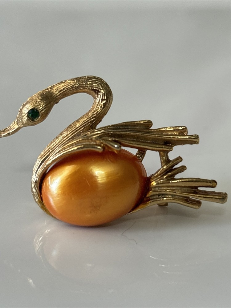 Absolutely love this brooch! The golden swan is stunning with its rich orange hues and that sparkling green rhinestone eye adds the perfect touch of elegance. The vintage vibe gives it so much charm, and it’s surprisingly lightweight yet feels sturdy. Looks amazing on jackets, scarves, or even a hat—adds instant glam to any outfit. A must-have for anyone who loves unique, statement accessories!
