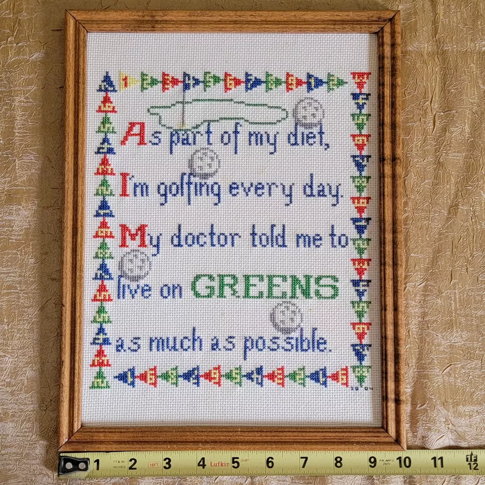 Vintage Golf Cross Stitch Needlework Framed Retro Home Office Decor Pre~Loved. In nice vintage condition. *Please note there are signs of small dots (splash-like) discoloration on fabric. Not sure if it is possible to remove or if stained. *Some minor peeling of paper on back of frame. Otherwise, it's in nice condition & nicely framed. ** Please refer to listing photos for condition details & measurements. 💛 Tia's Boutique offers: ▪︎ Flat shipping rates for all packages up to 5 lbs. ▪︎ All purchases are mailed out within ONE (next) business day! ▪︎ FREE Returns kindly accepted within 30 days of purchase. ▪︎ Shipping from a smoke-free home. ▪︎ Packaged with care & gratitude. Please reach out with any questions you may have. Thank you for visiting my shop & happy ebaying! 😊