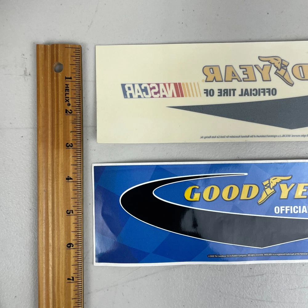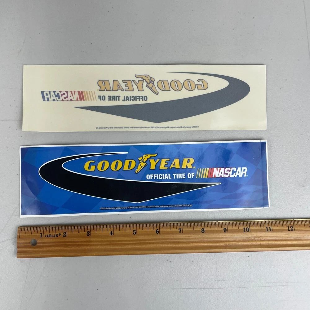 Set of two new Deadstock Goodyear oficial tire of Nascar bumper stickers. One is with a blue background and one is a transparent background. Each 3"x11". Please see the item photos for condition. Feel free to DM us with questions or concerns. We are alway happy to help. We would be happy to bundle shipping to save you money. Rerun Goods Co. recycles shipping materials to help the planet. You are doing your part by buying secondhand. Thank you for shopping our store! We would love to serve you again, so save,favorite,like our store and visit us again to see new items, listed regularly.