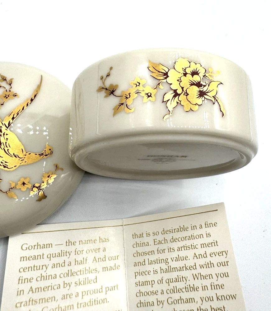 Vintage Gorham Fine China Gold Pheasant Covered Ring Jewelry Trinket Box