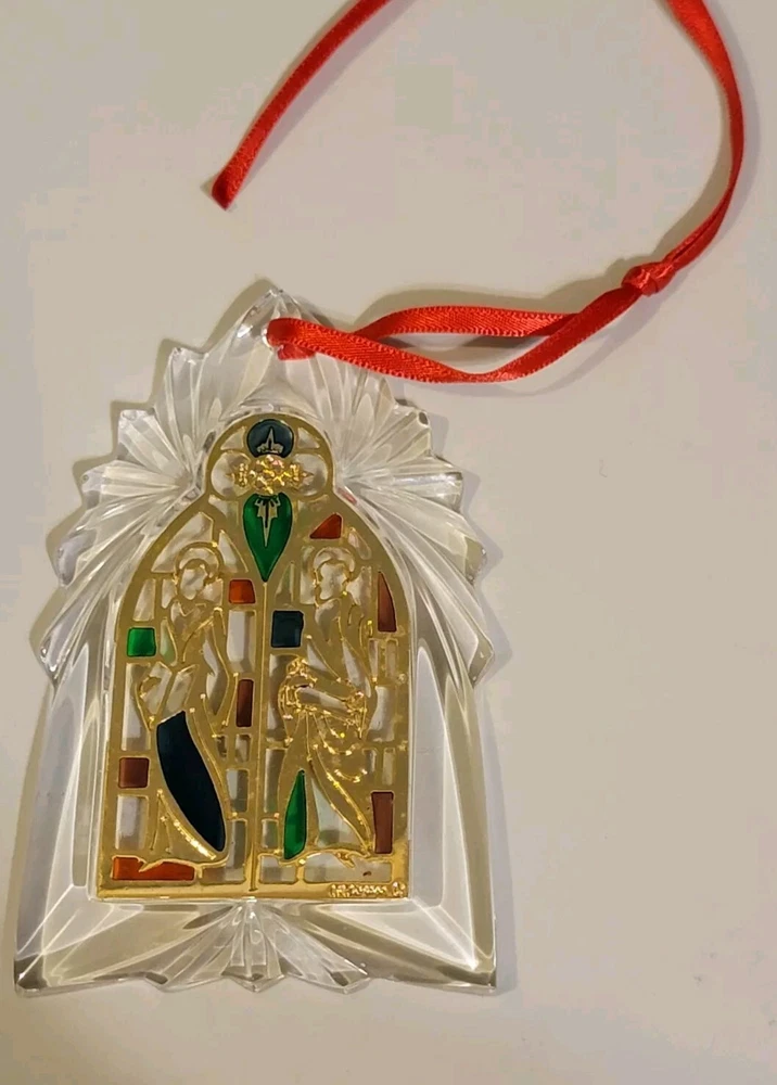 This vintage Gorham stain glass English window Christmas ornament is a beautiful addition to any holiday decor. Measuring about 3.5 inches in height and 2 inches in length, it features a stunning irregular shape and a multicolor stained glass pattern. The ornament is made of high-quality crystal and comes in its original box, making it a great gift for collectors or anyone who appreciates vintage Christmas decorations. The ornament is an original piece from the 1990s, manufactured in Germany. It is perfect for anyone over 18 years old and is sure to add a touch of elegance to any Christmas tree. The set includes one ornament and is part of the Ornaments collection. The theme is a stain glass window and the subject is crystal. This antique-style ornament is not personalized and is suitable for multipurpose recipients.