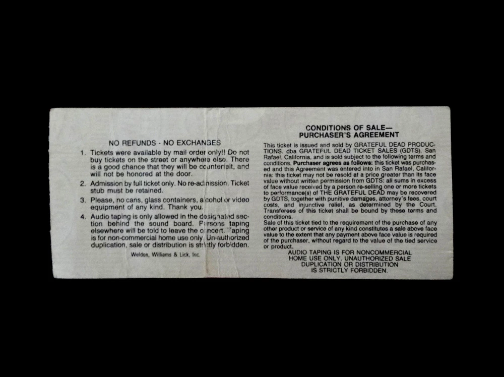 $ 89.76Grateful Dead Backstage Pass University of Maryland Terrapins 1981 Concert Memorabilia