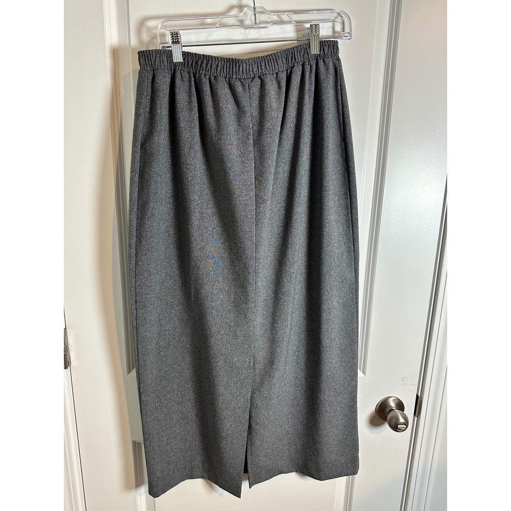 Style: Straight & Pencil Features: Slit, Elastic Waist Skirt Length: Midi Department: Women Character: Classic, Minimalist, Career, Normcore Brand: Unbranded Color: Gray Size: 12 Material: Polyester Closure: Pull On Pattern: Solid Occasion: Business, Casual, Workwear Type: Skirt Vintage: Yes Size Type: Regular