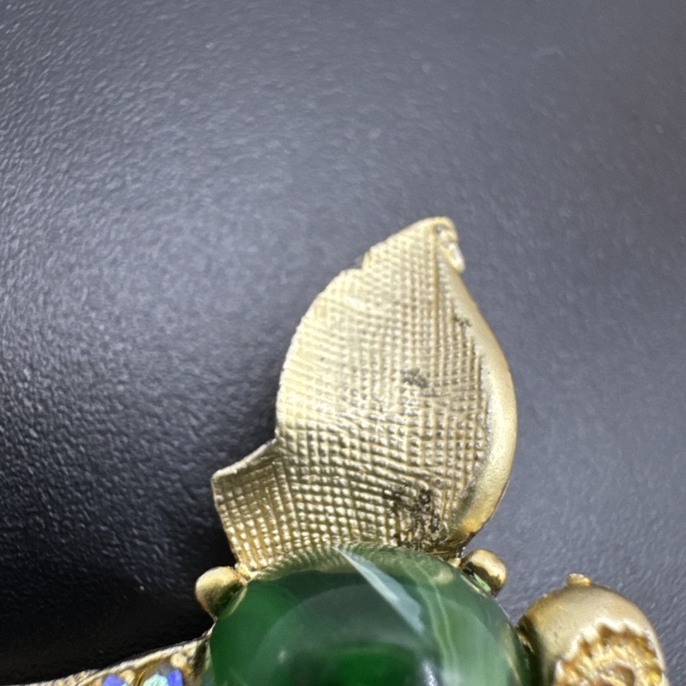 Metal: Unknown Colored Diamond Intensity: Na Material: Rhinestone Country of Origin: Unknown Color: Green Brand: Jelly Belly Main Stone Shape: Cabochon Item Length: 1.75” Department: Unisex Adults Type: Brooch Main Stone Creation: Unknown Certification: Na Diamond Clarity Grade: Na Theme: Birds Cut Grade: Na Main Stone Treatment: Unknown Metal Purity: Na Main Stone Color: Green Total Carat Weight: Na Diamond Color Grade: Na Setting Style: Prong Main Stone: Glass